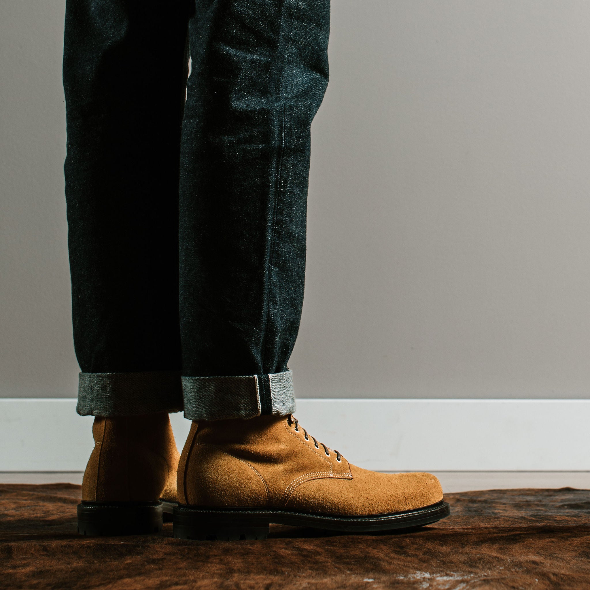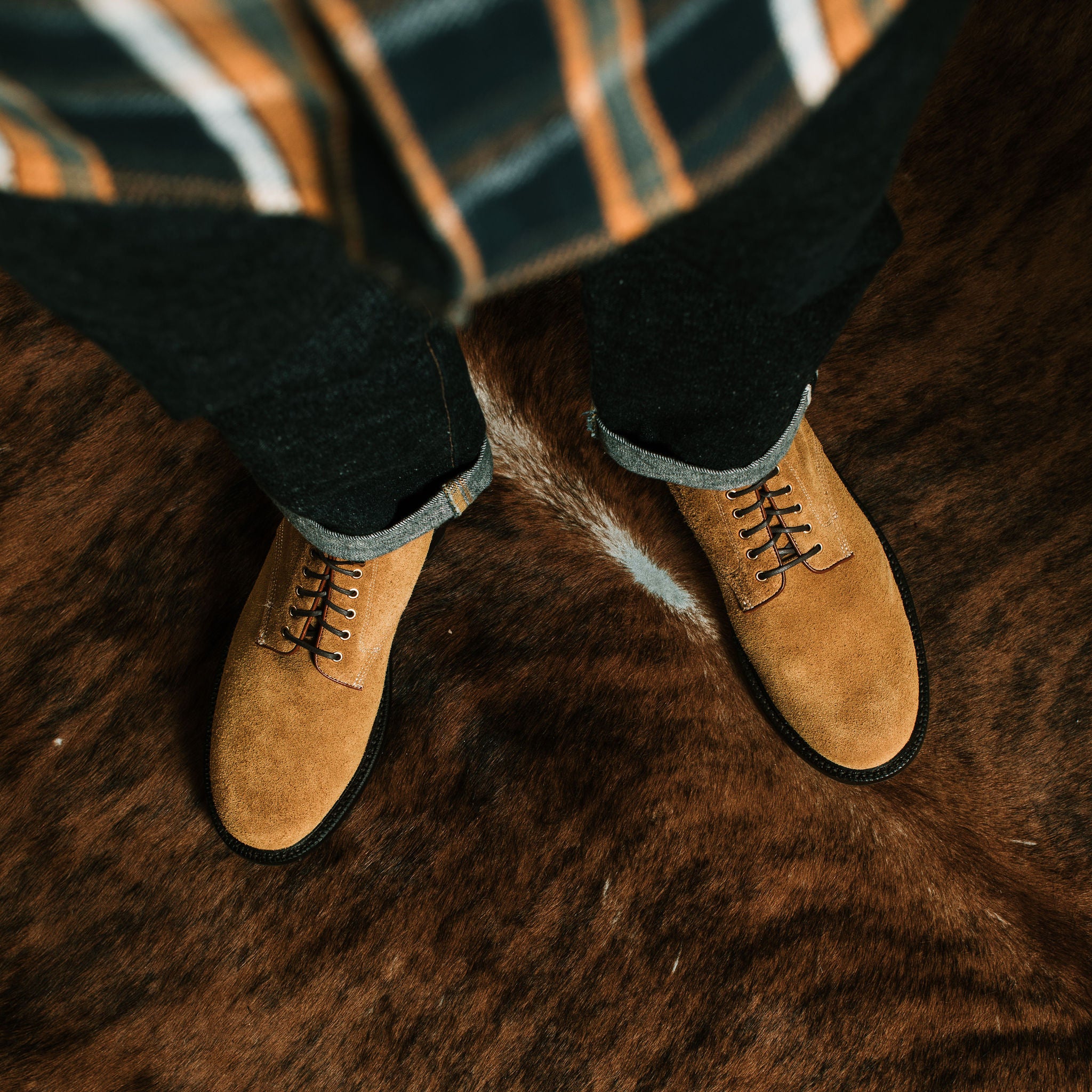 The Floyd Last is a modified version of the Leo and shares many of the same features: a moderate arch, heel control, medial support, and forefront freedom. In contrast to its progeniture, the Floyd last features a taller, more voluminous toe box, providing a classic Americana workwear look.