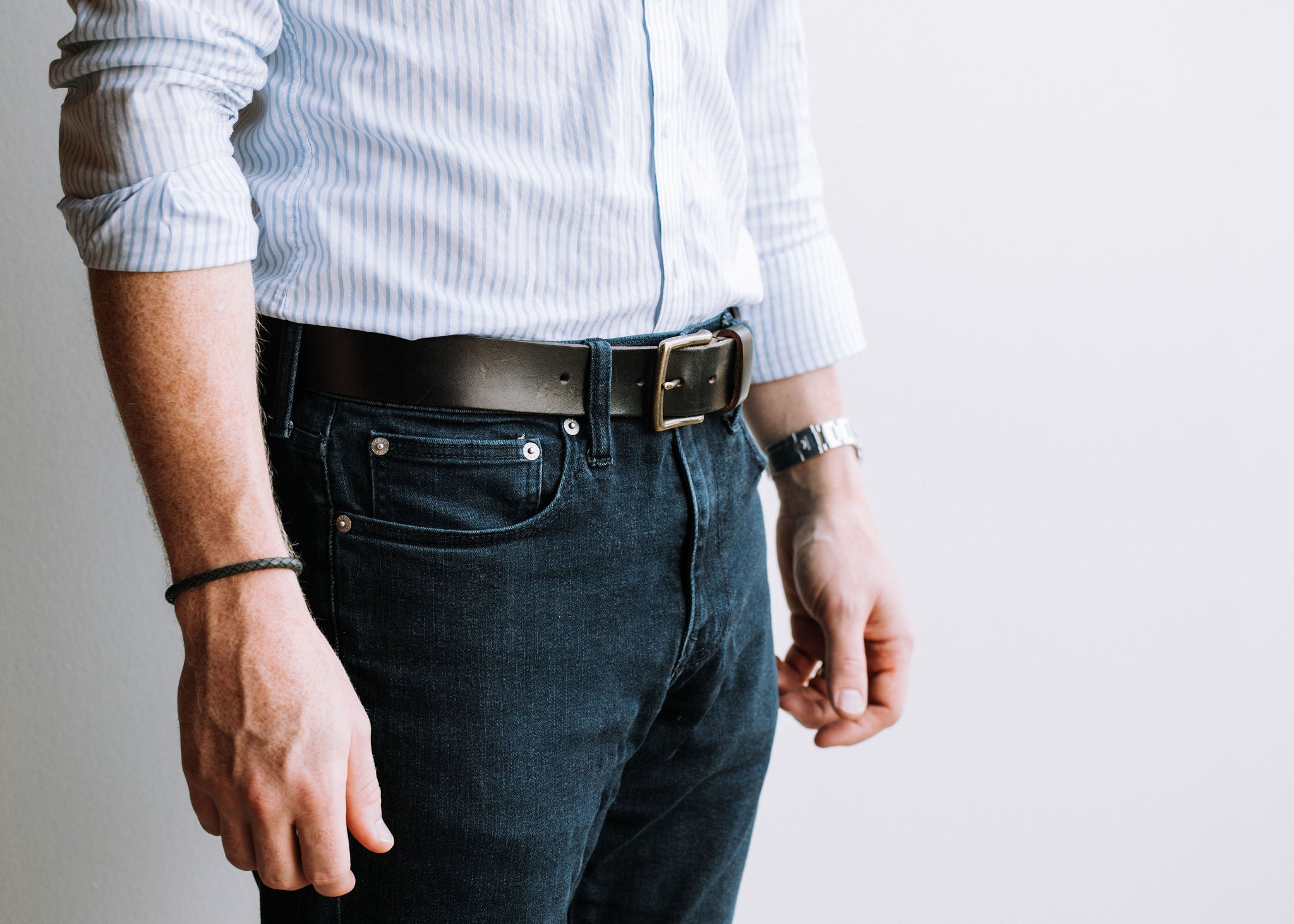 This leather belt was designed with two goals in mind: combining a one-piece construction with the best hardware we could find. The result is a staple accessory designed to go the distance with you.