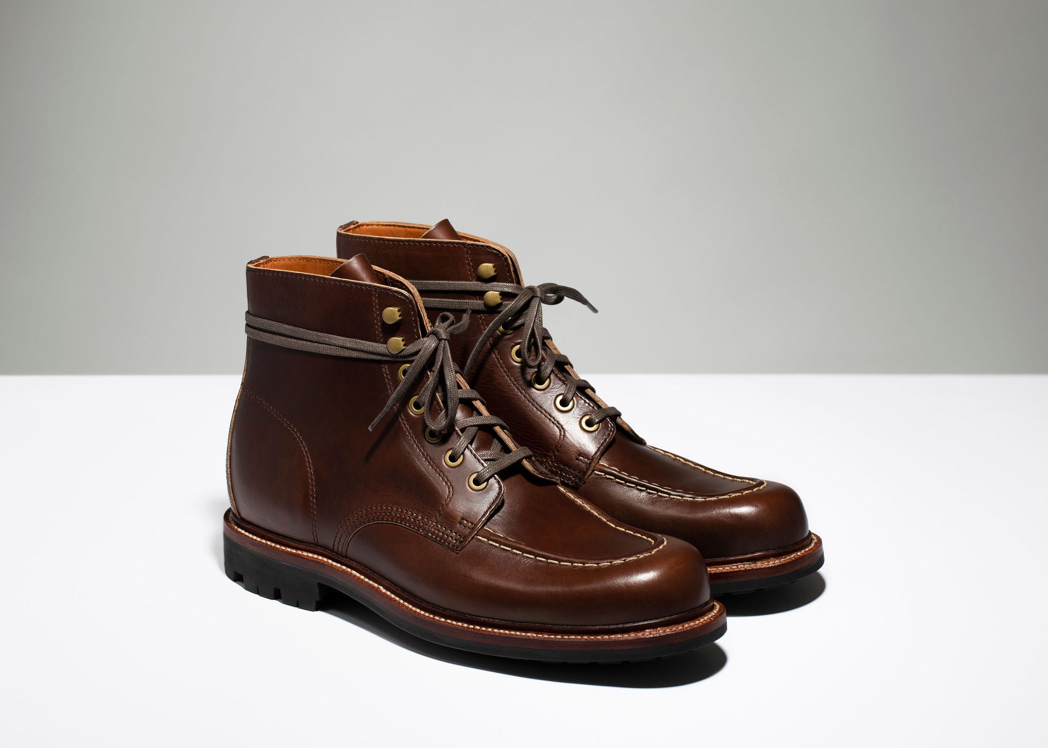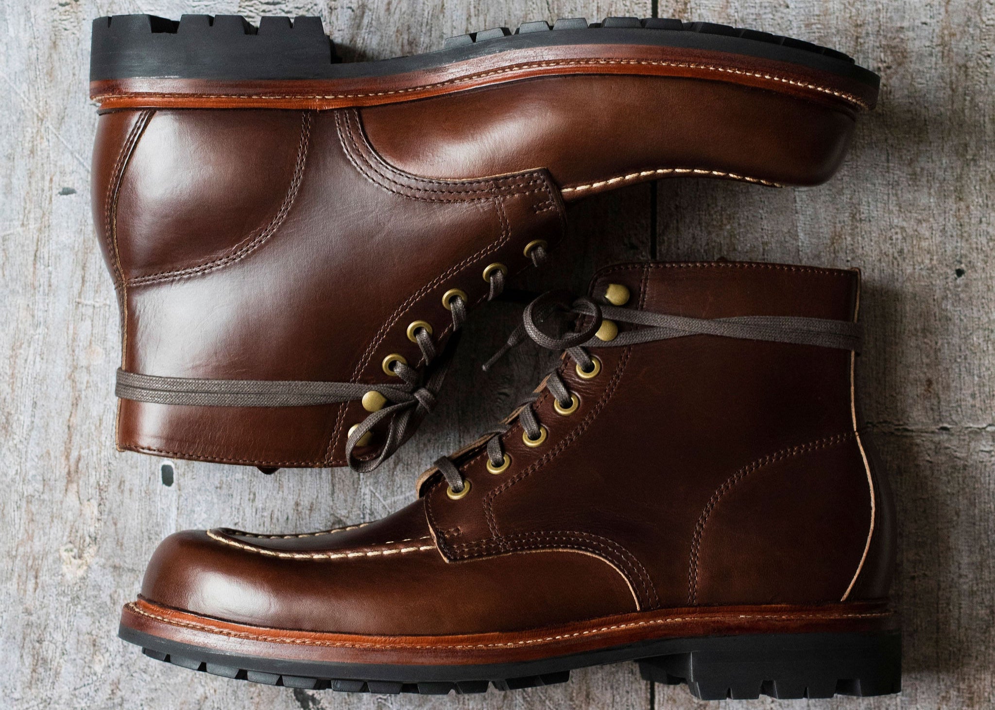 The Brass Boot combines robust leathers, rugged outsoles, and all-day comfort.The moc toe is hand-sewn onto a one-piece vamp. The Floyd last features the same locked-in heel control but with higher walls at the toe box to allow forefoot freedom.