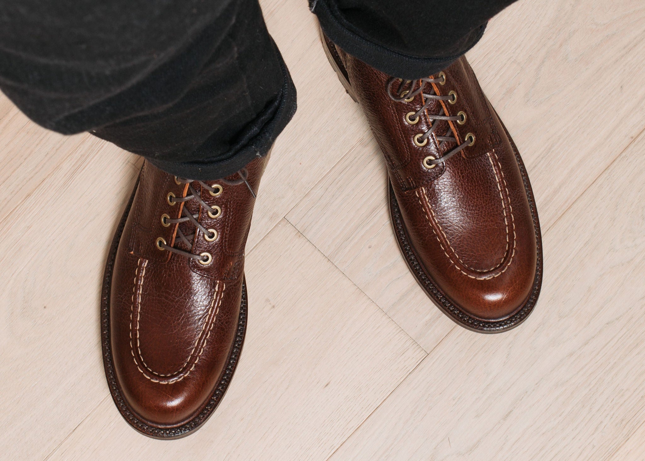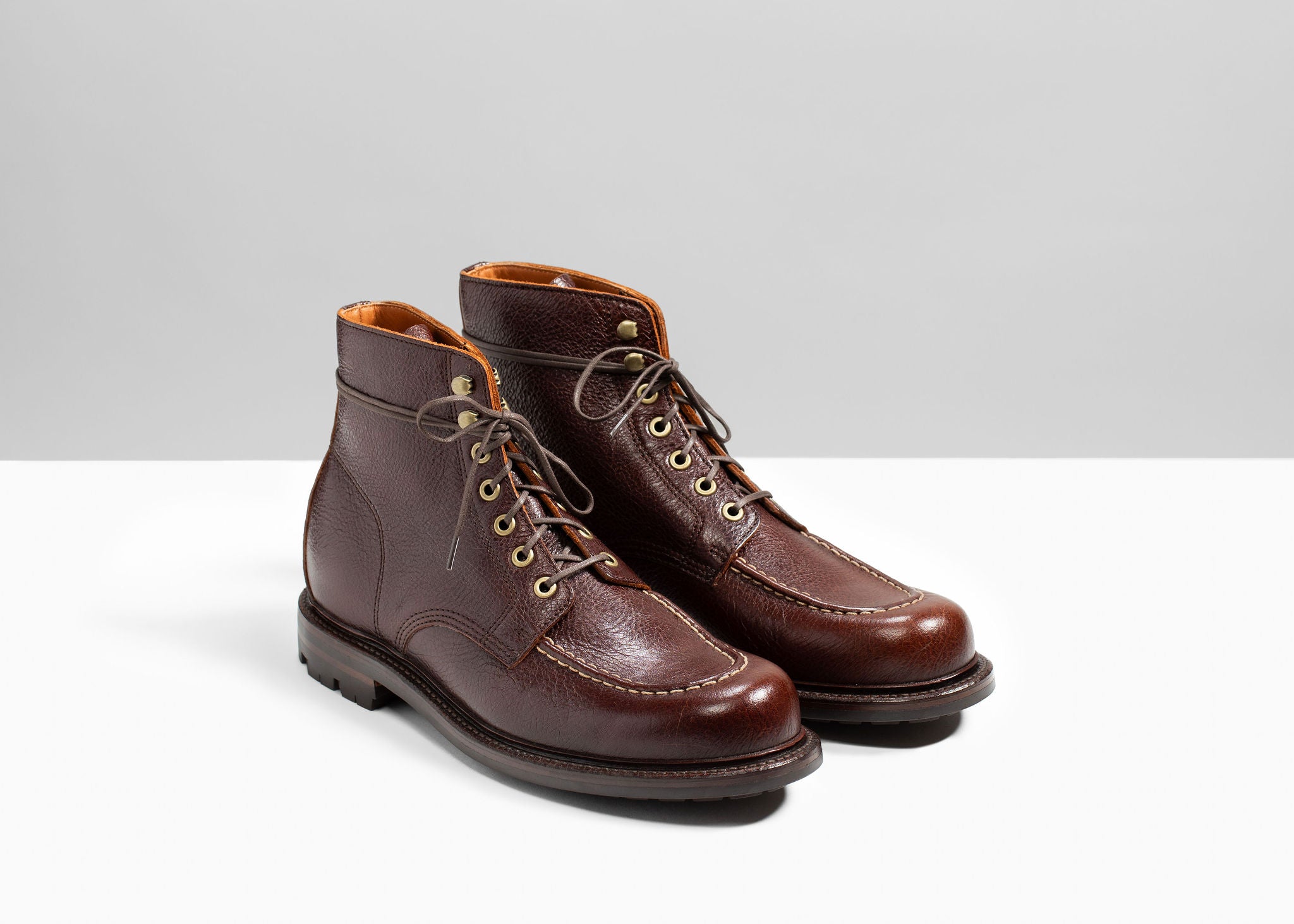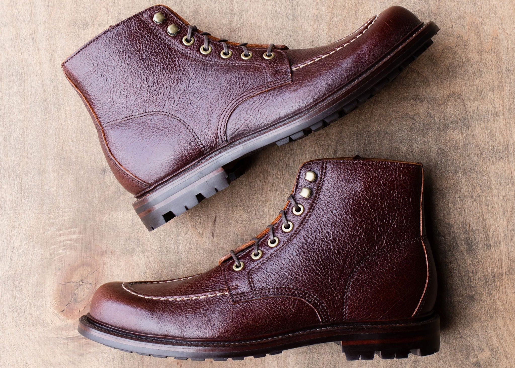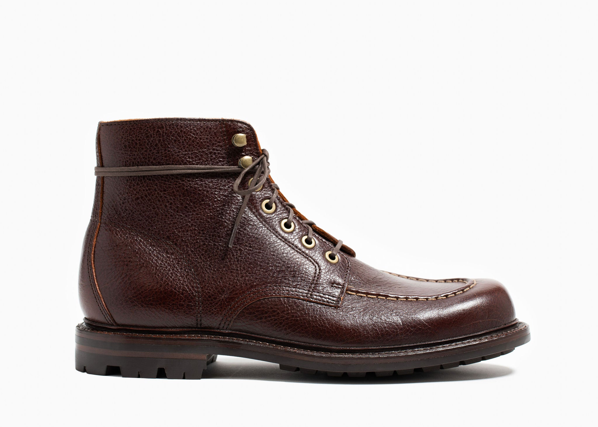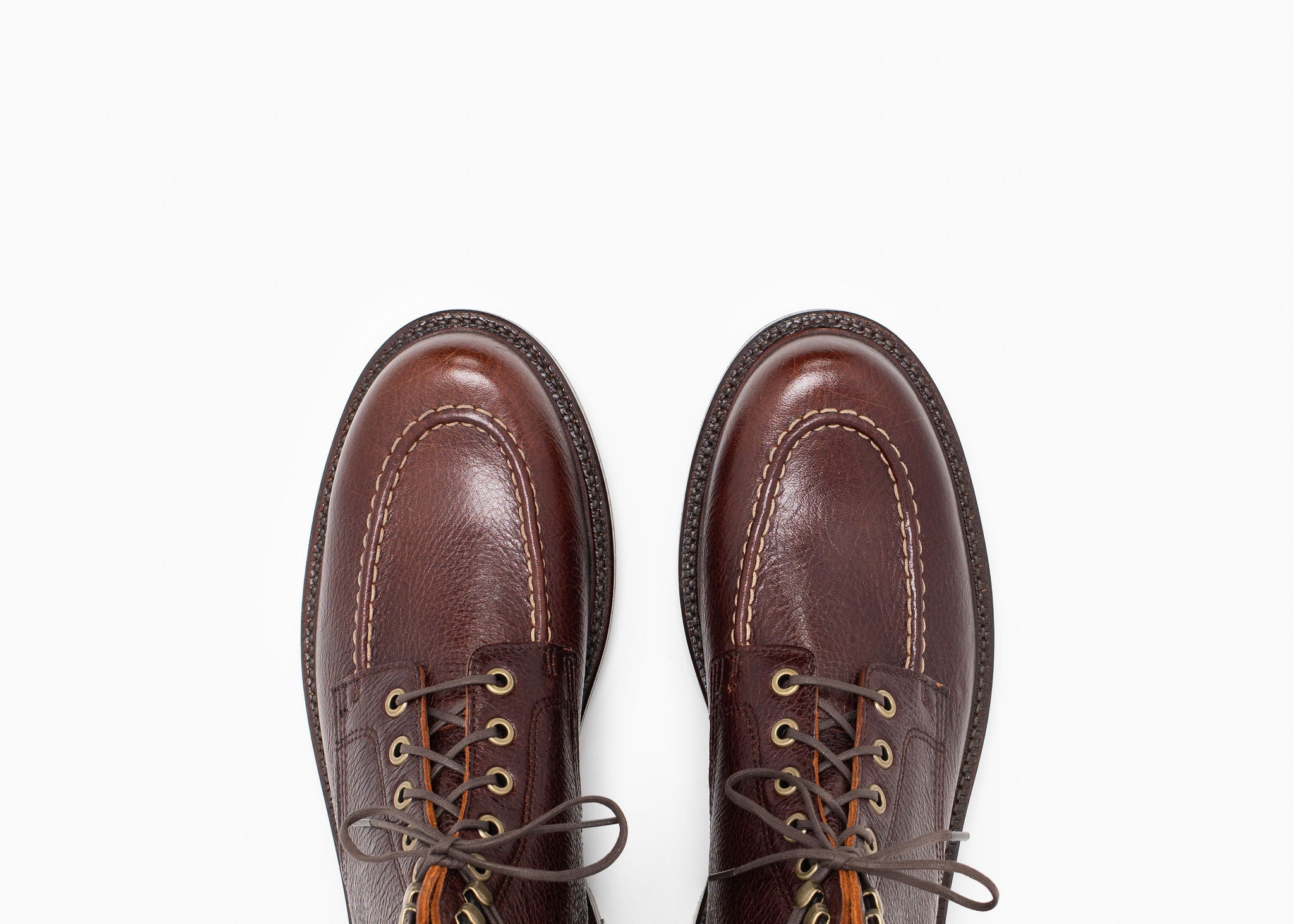 The Brass Boot combines robust leathers, rugged outsoles, and all-day comfort. The moc toe is hand-sewn onto a one-piece vamp. The Floyd last features the same locked-in heel control but with higher walls at the toe box to allow forefoot freedom.