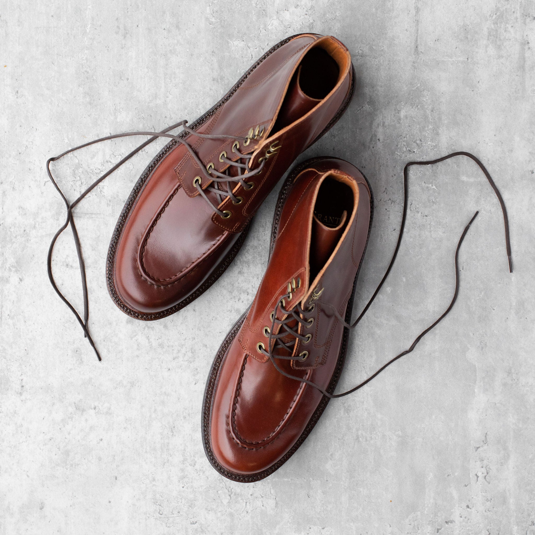 Garnet Shell Cordovan is a difficult color to define, falling between a deep ruby and medium-bodied red wine. The depth of the vegetable-tanned Cordovan creates a rich, saturated color that cannot be replicated.