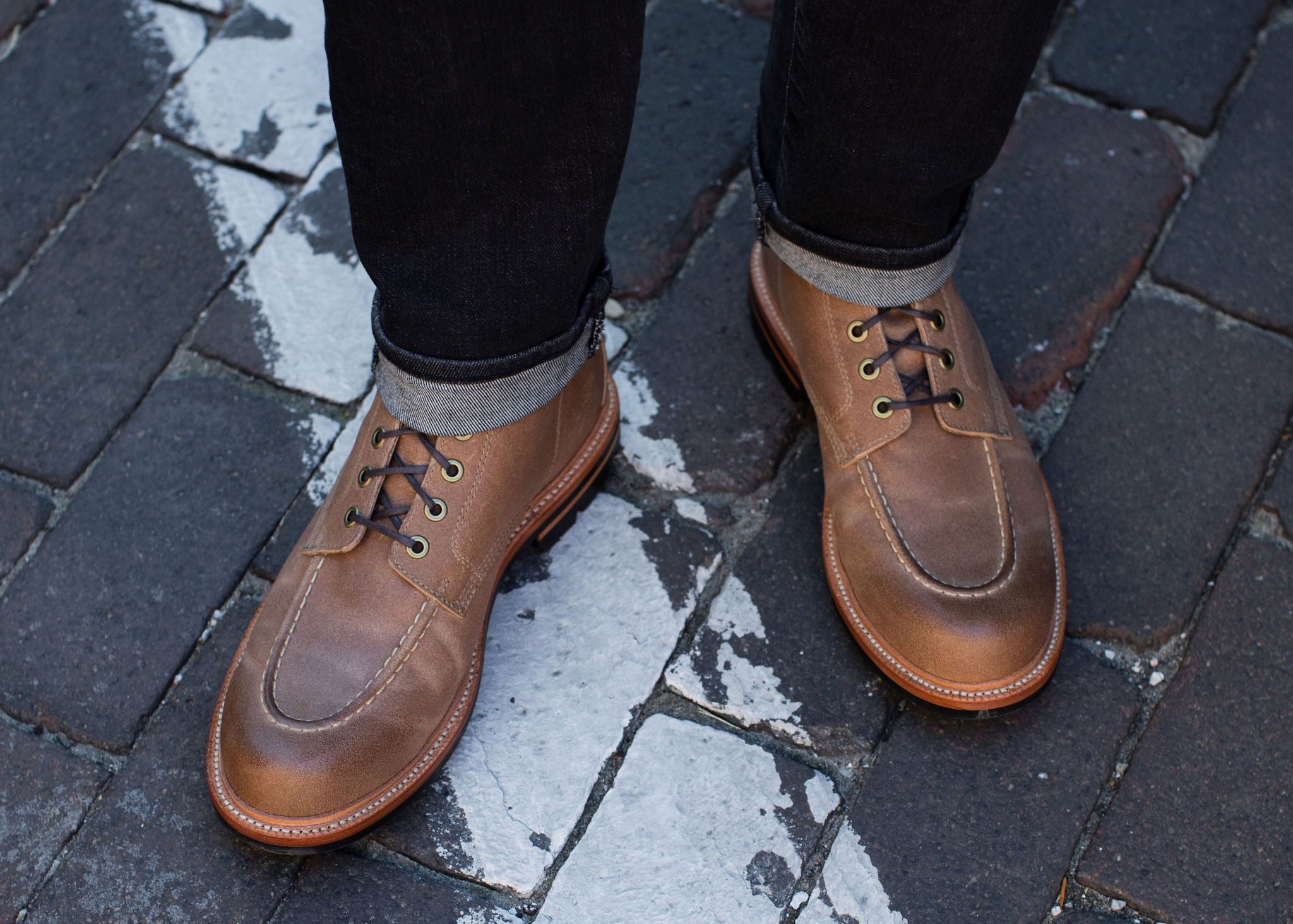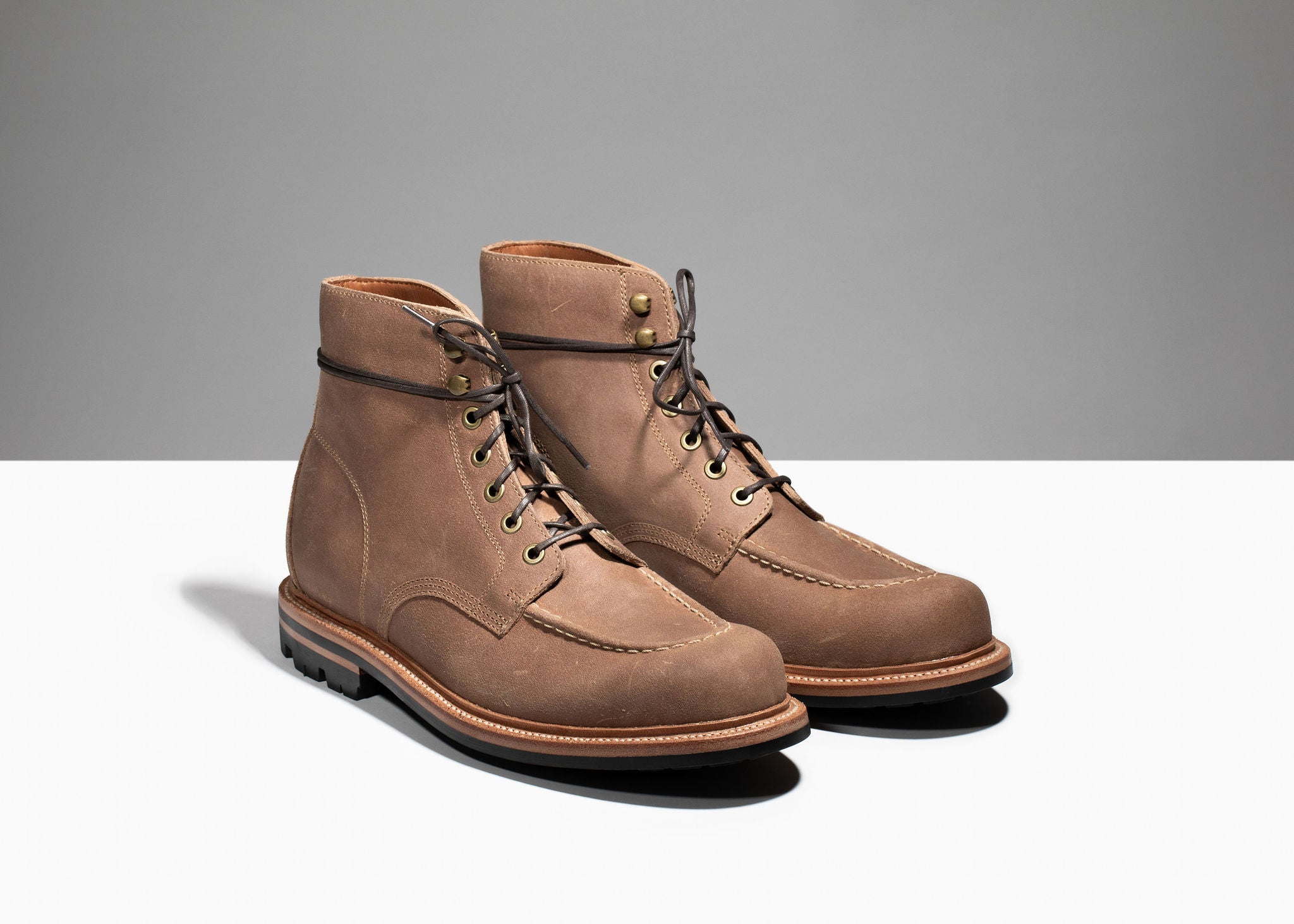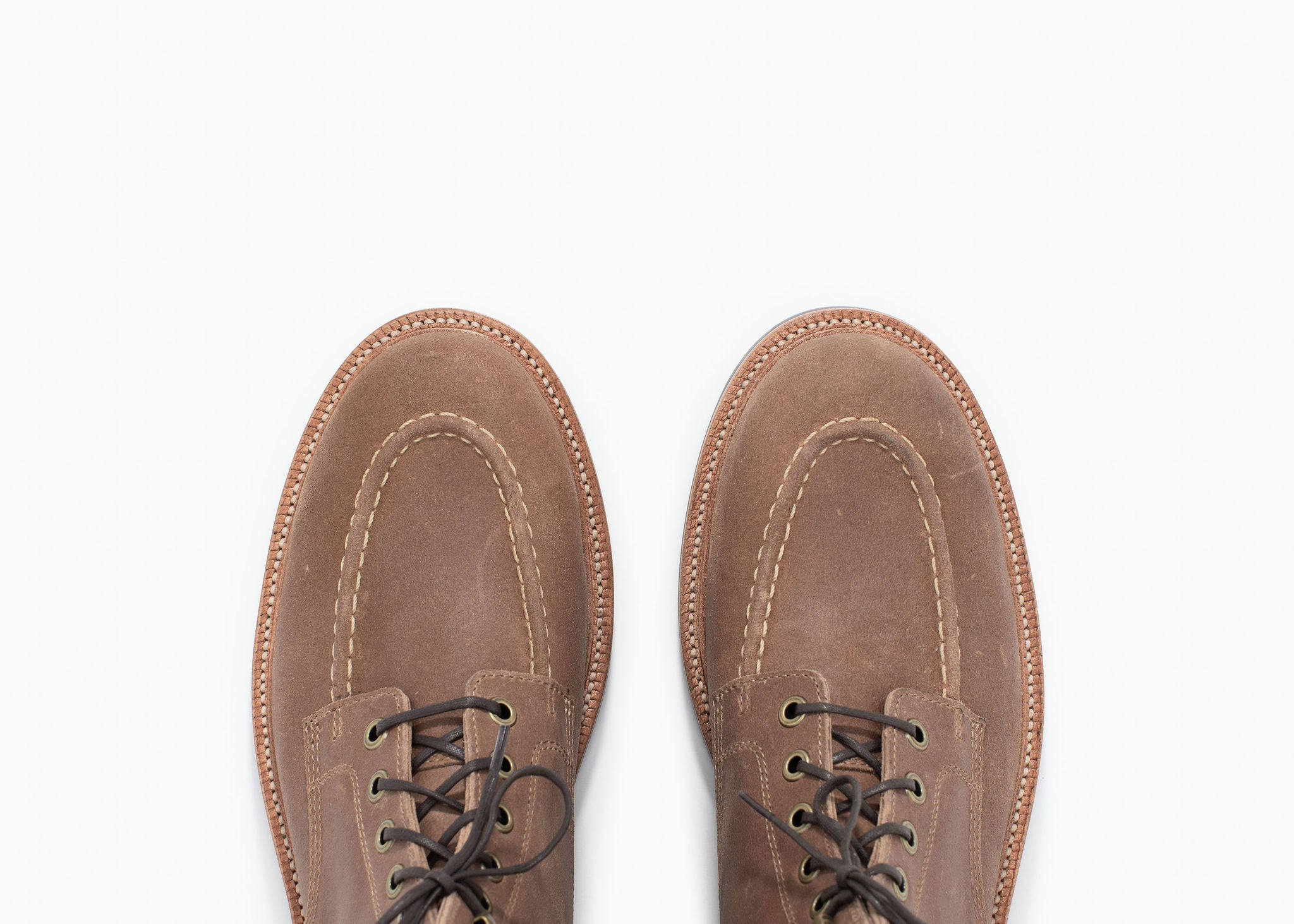 The Brass Boot combines robust leathers, rugged outsoles, and all-day comfort. The moc toe is hand-sewn onto a one-piece vamp. The Floyd last features the same locked-in heel control but with higher walls at the toe box to allow forefoot freedom.