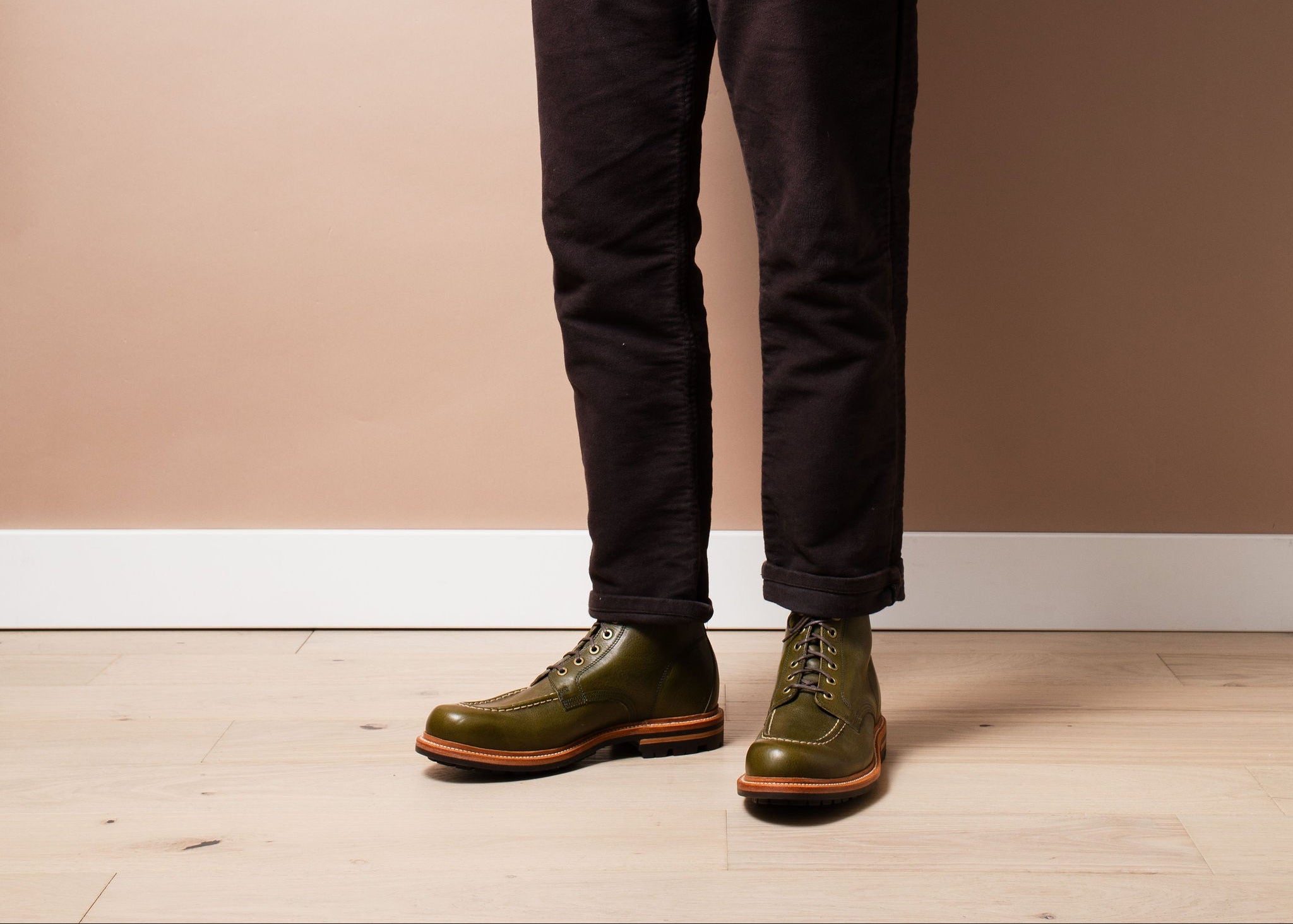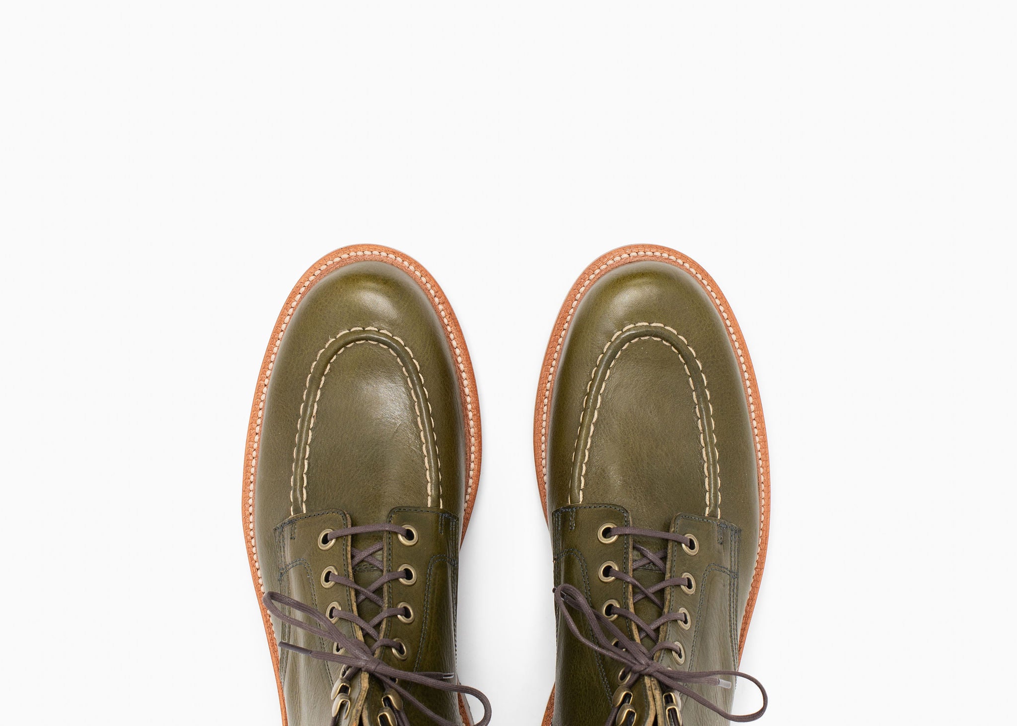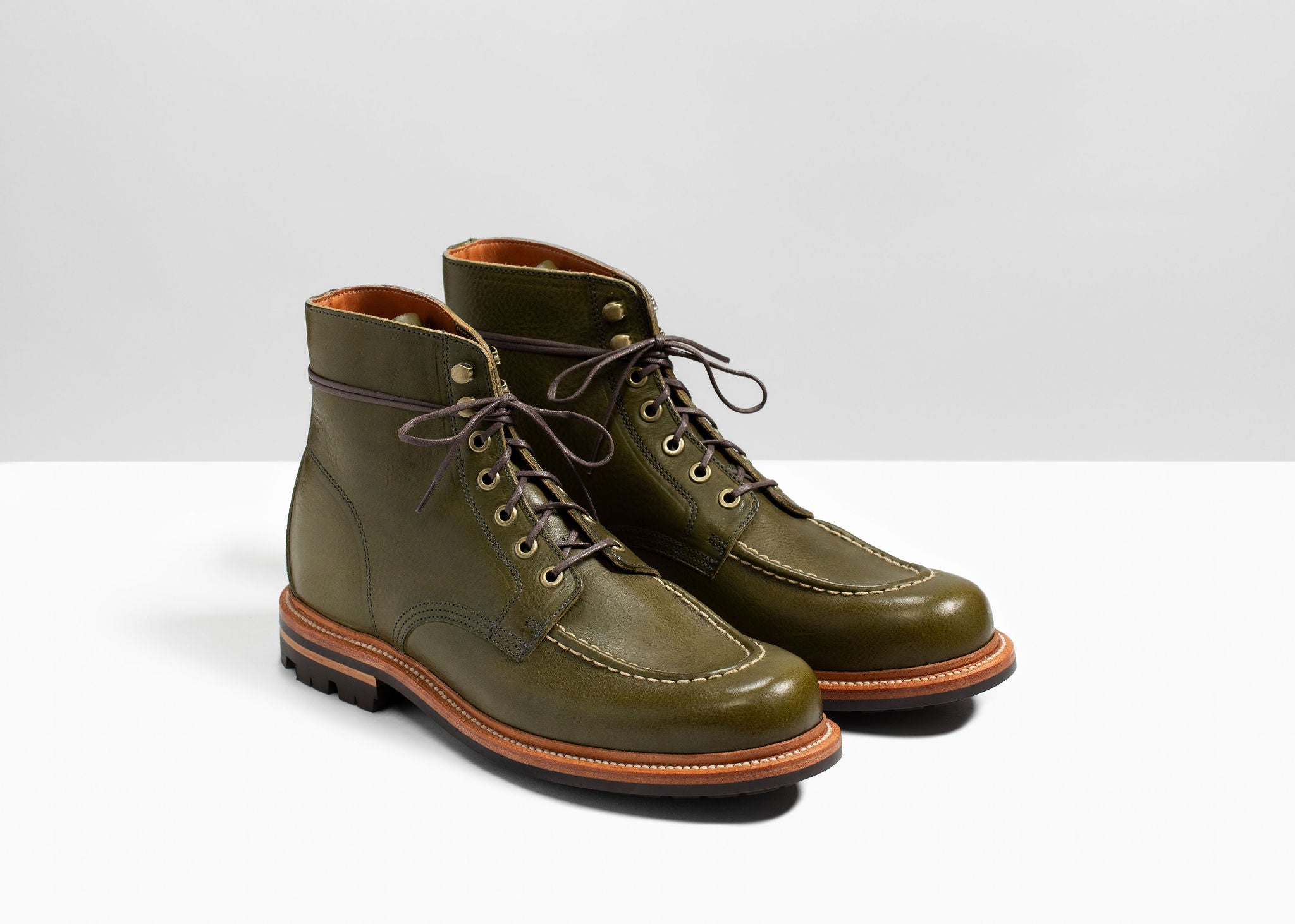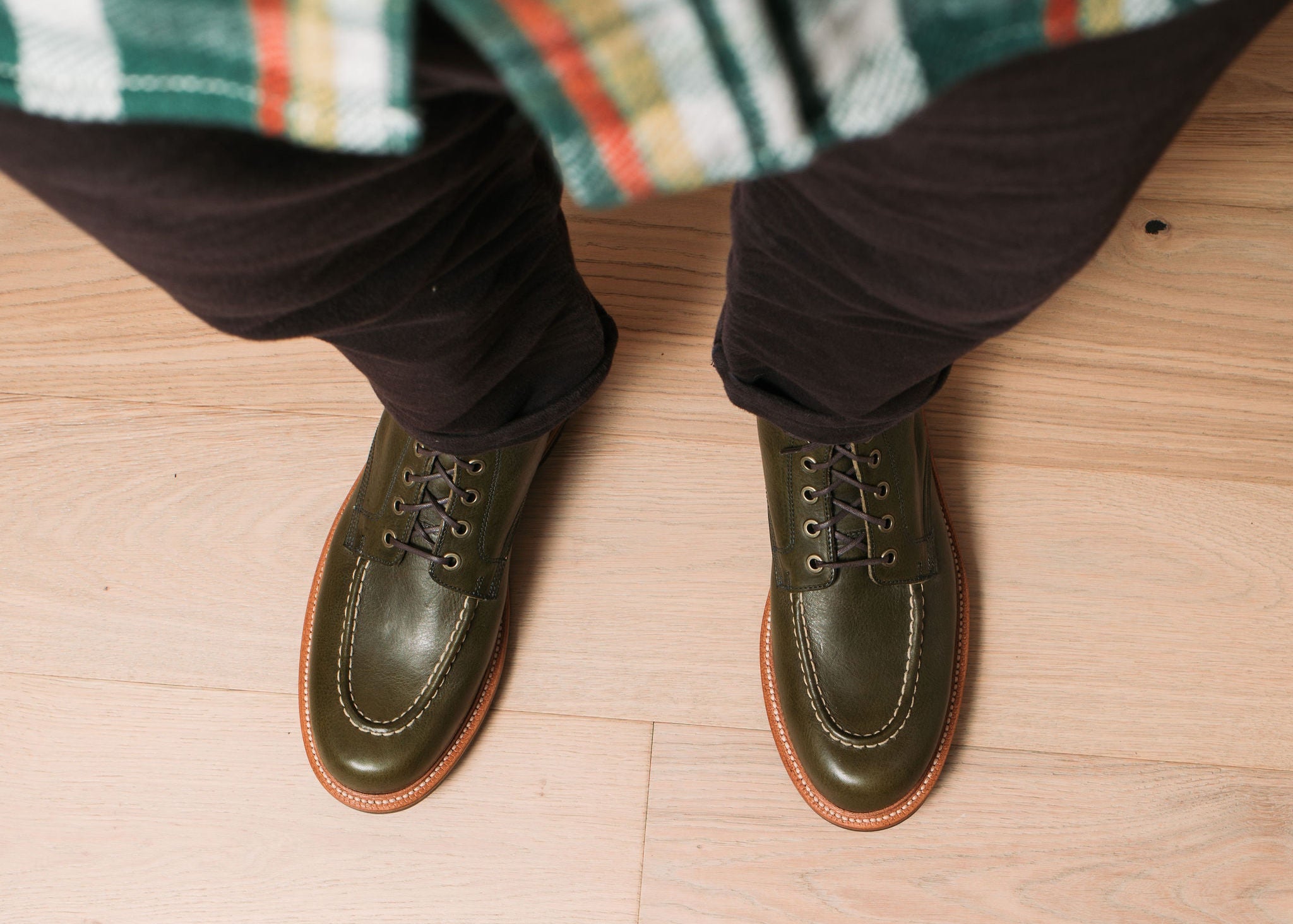 The Brass Boot combines robust leathers, rugged outsoles, and all-day comfort. The moc toe is hand-sewn onto a one-piece vamp. The Floyd last features the same locked-in heel control but with higher walls at the toe box to allow forefoot freedom.