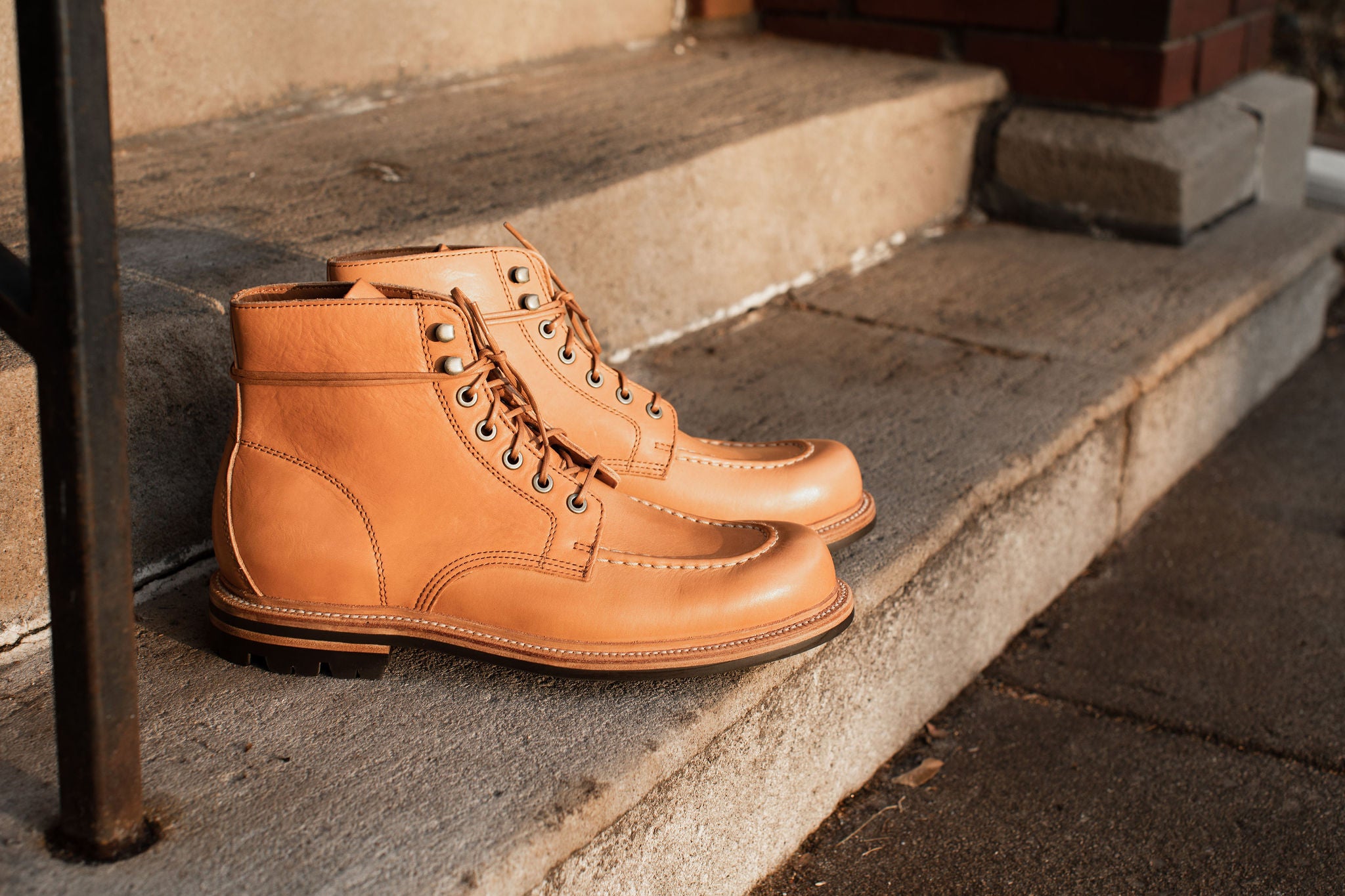 The Brass Boot combines robust leathers, rugged outsoles, and all-day comfort. The moc toe is hand-sewn onto a one-piece vamp. The Floyd last features the same locked-in heel control but with higher walls at the toe box to allow forefoot freedom.
