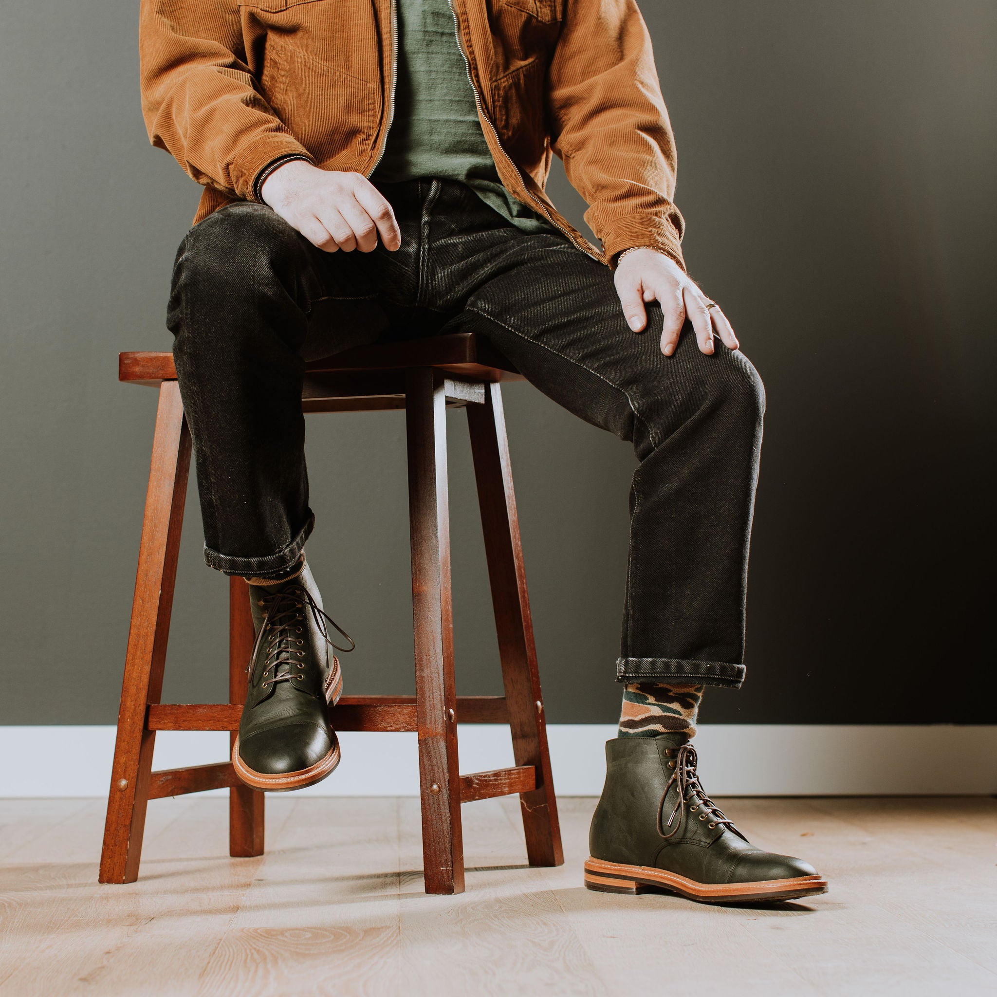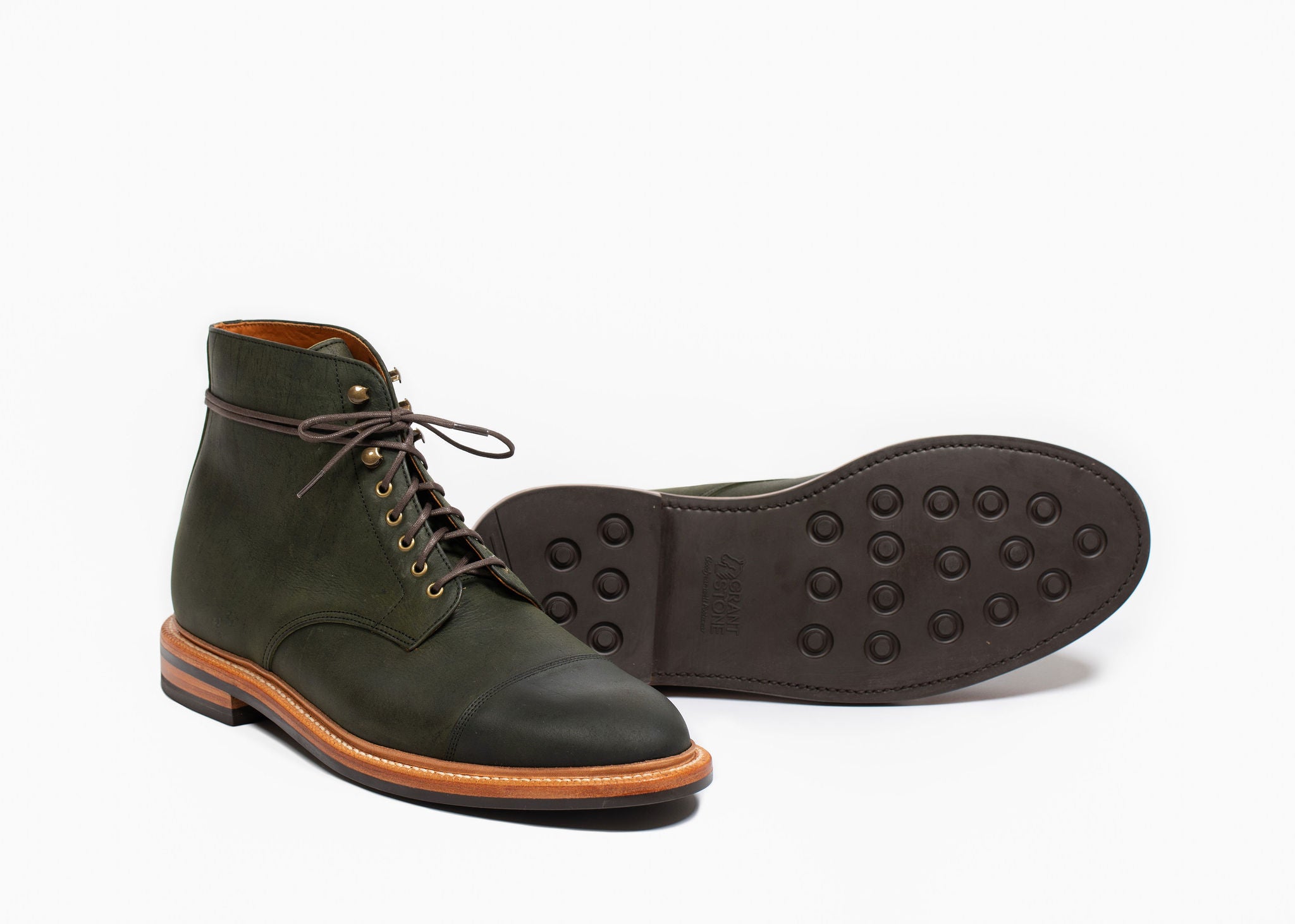 This deep, forest green Kudu model oozes character. The dark green kudu leather has natural scars and blemishes unique to the African antelope. It will transform with wear, creating a unique look that cannot be duplicated. The natural split reverse welts and micro-stud sole offer just the right amount of contrast with the darker upper.