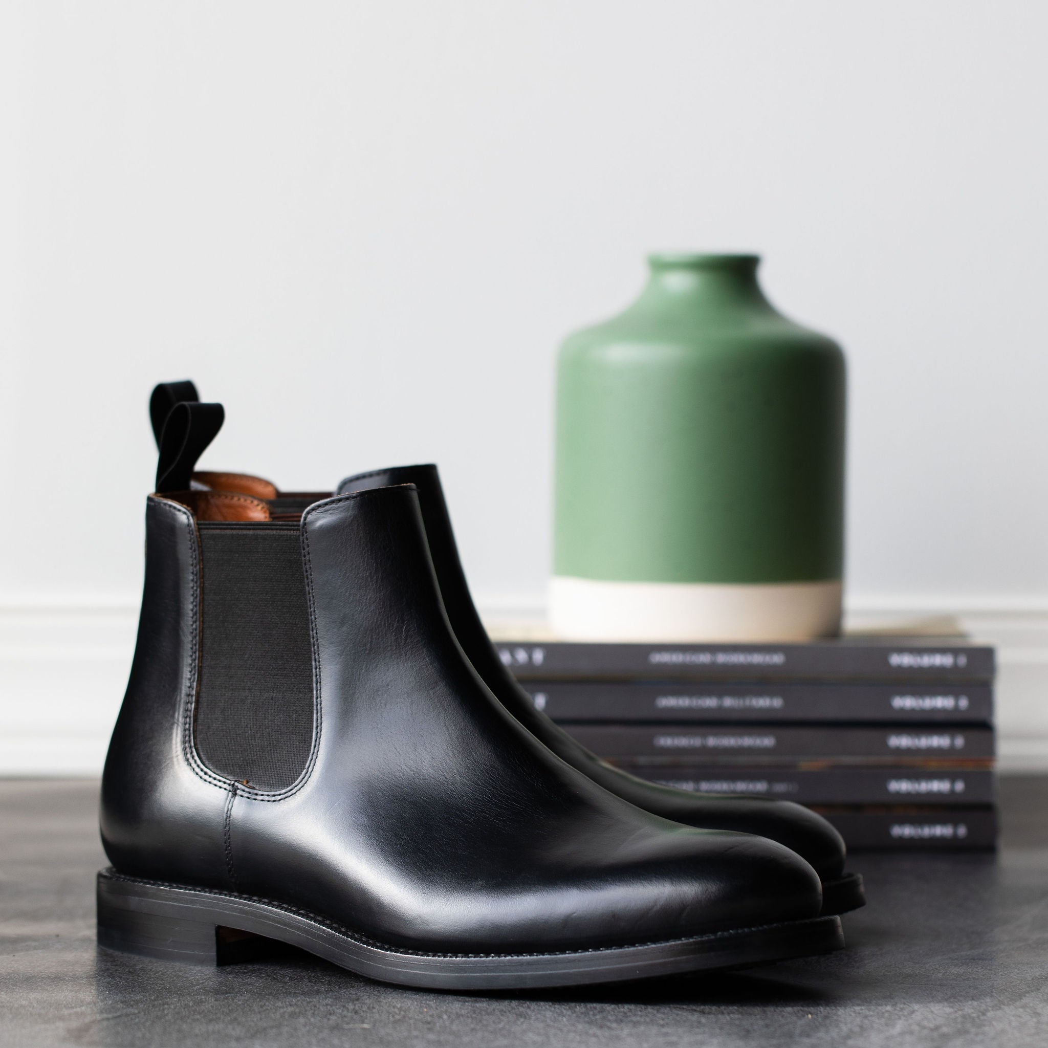 The UK last draws inspiration from the classic black Chelsea boots of the Beatles. Featuring an aesthetically elongated and sharper toe expression, the UK last provides the sophistication of a sleeker European last while still providing moderate arch support and breathing room for your forefoot.