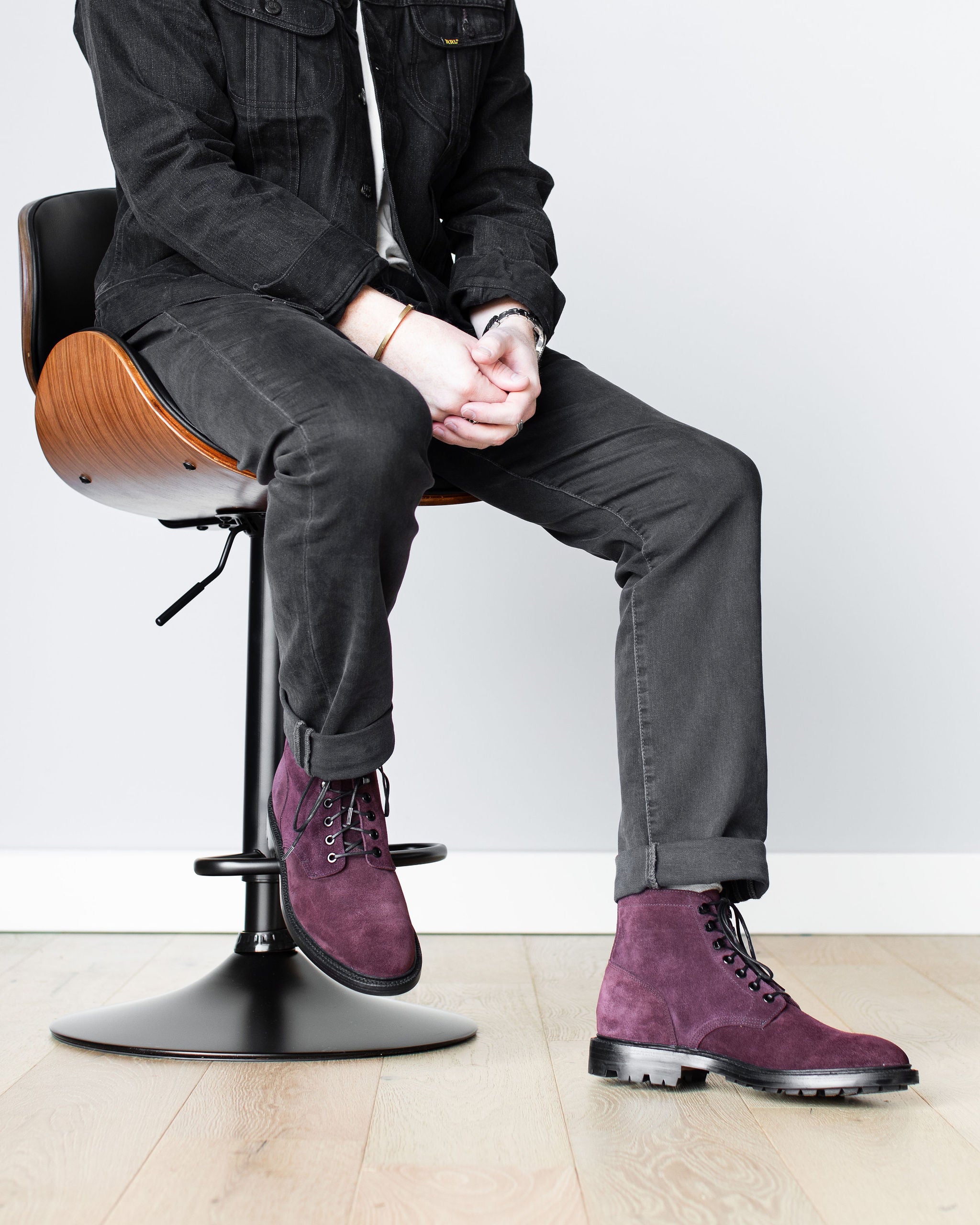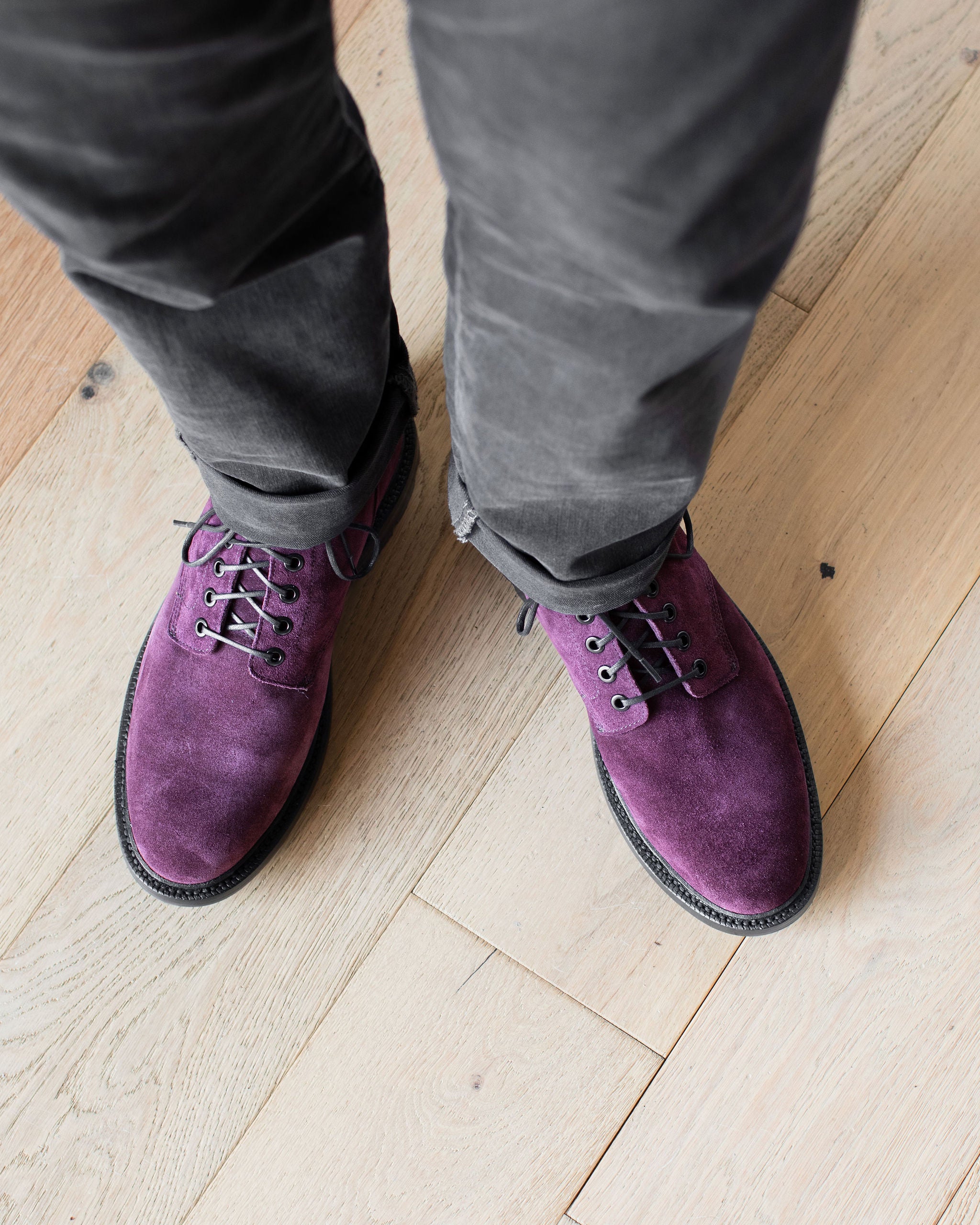 Charles F. Stead's Berry Suede with its rich, deep purple hue, lend a touch of regality to any ensemble. This versatile color pairs effortlessly with dark indigo or black denim, providing a striking pop of color that elevates your overall look. The Berry suede can also be complemented by other neutrals like grey, brown, or even olive green, offering a range of options for creating stylish and sophisticated outfits. Whether dressing up for a night out or keeping it casual for a weekend brunch, the Berry Suede shoes from Charles F. Stead will surely become a go-to staple in your wardrobe.
