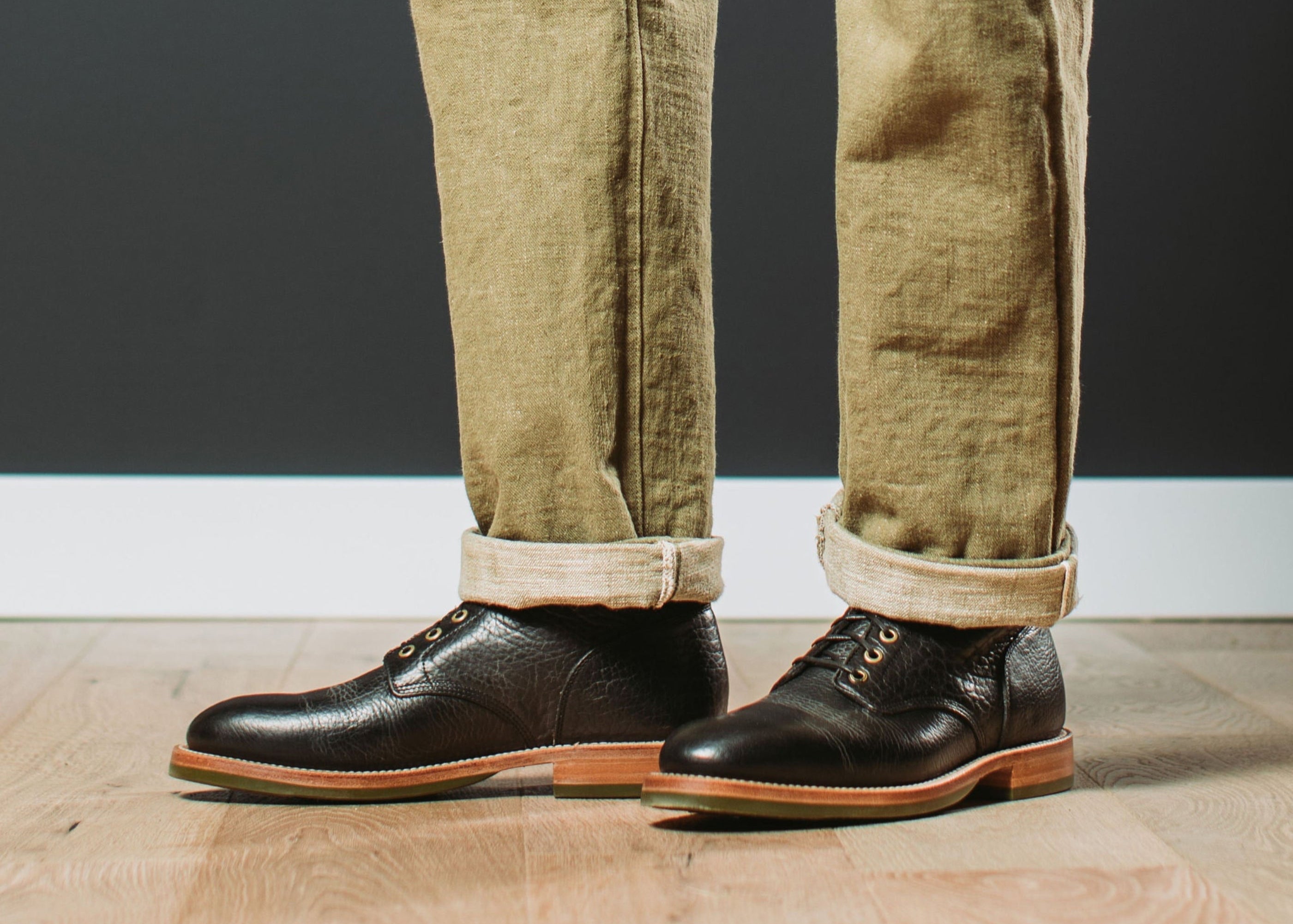 American Bison hides are known for their heavier weight and natural distinctive grain patterns. The prominent pebble effect varies throughout the leather, making each cut unique. This article is tanned with a healthy amount of waxes and oils to create a rich color and pull-up effect. The distinct look and gutsy body of Bison hide make it an excellent choice for Goodyear-welt boots.