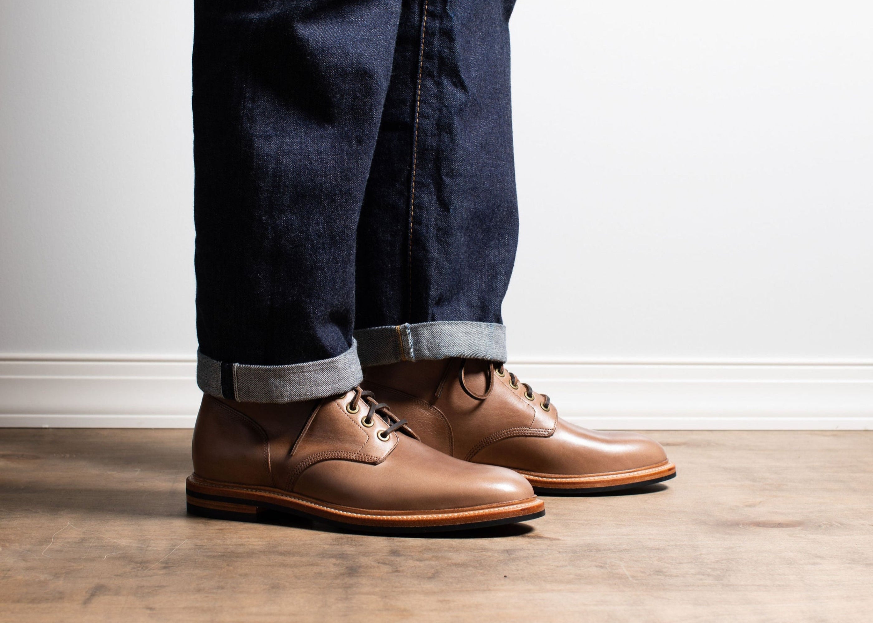 Chromexcel leather tanned by Horween in Chicago is incredibly resilient while offering unparalleled character. The hot-stuffed tannage's natural oils and waxes create an unmistakable pull-up effect and supple feel. Creasing and color variation are to be expected on these natural, aniline leathers. Each pair will develop differently as each hide is unique.