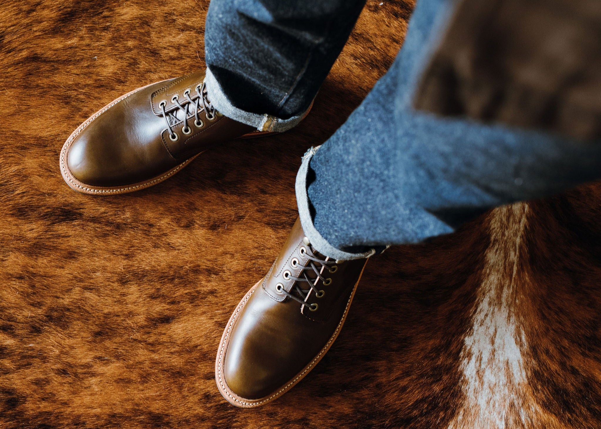 Creasing and color variation are to be expected on these natural, aniline leathers. Each pair will develop differently as each hide is unique.