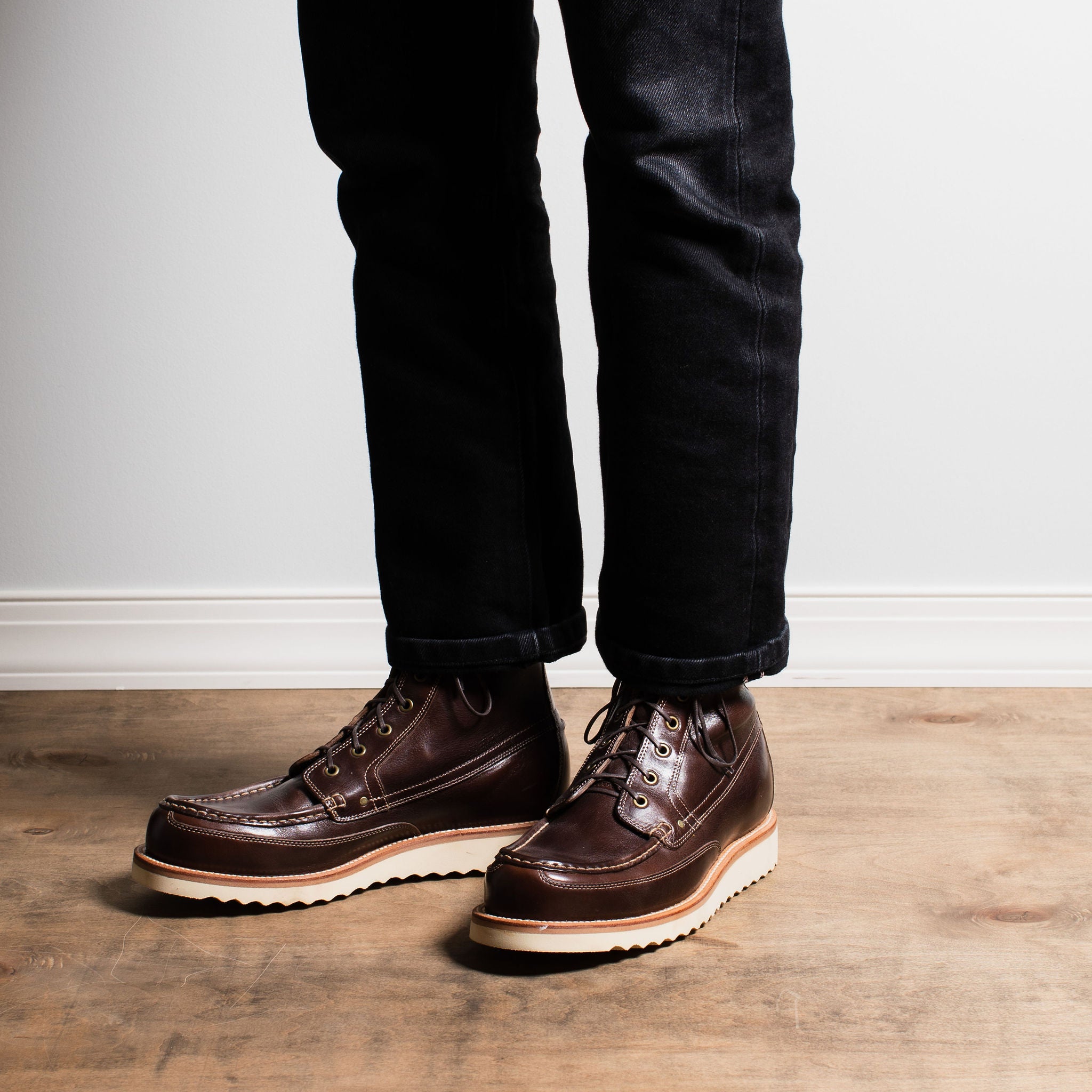 The Floyd Last is a modified version of the Leo and shares many of the same features: a moderate arch, heel control, medial support, and forefront freedom. In contrast to its progeniture, the Floyd last features a taller, more voluminous toe box, providing a classic Americana workwear look.
