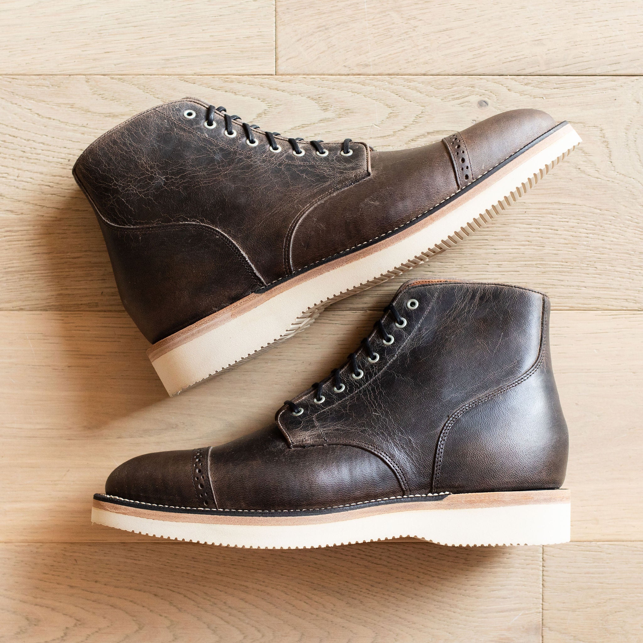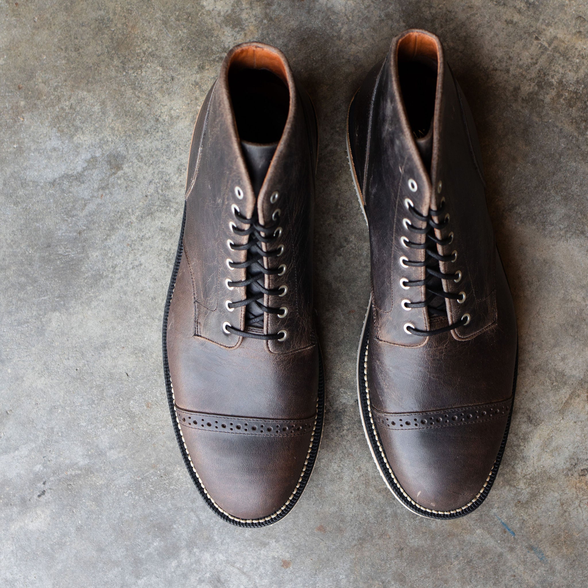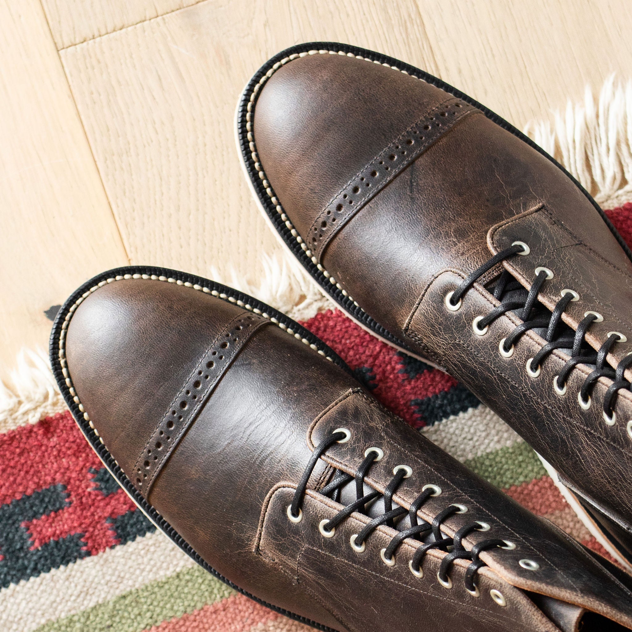 Renowned for its durability and ability to be resoled repeatedly, Goodyear-welt construction involves stitching a welt—a strip of leather—around the shoe's perimeter, creating a cavity. After filling the cavity with the shank and cork, the sole is attached, providing strength and water resistance. This construction method results in shoes that are not only long-lasting but also easily repairable, making them a timeless investment in quality craftsmanship.