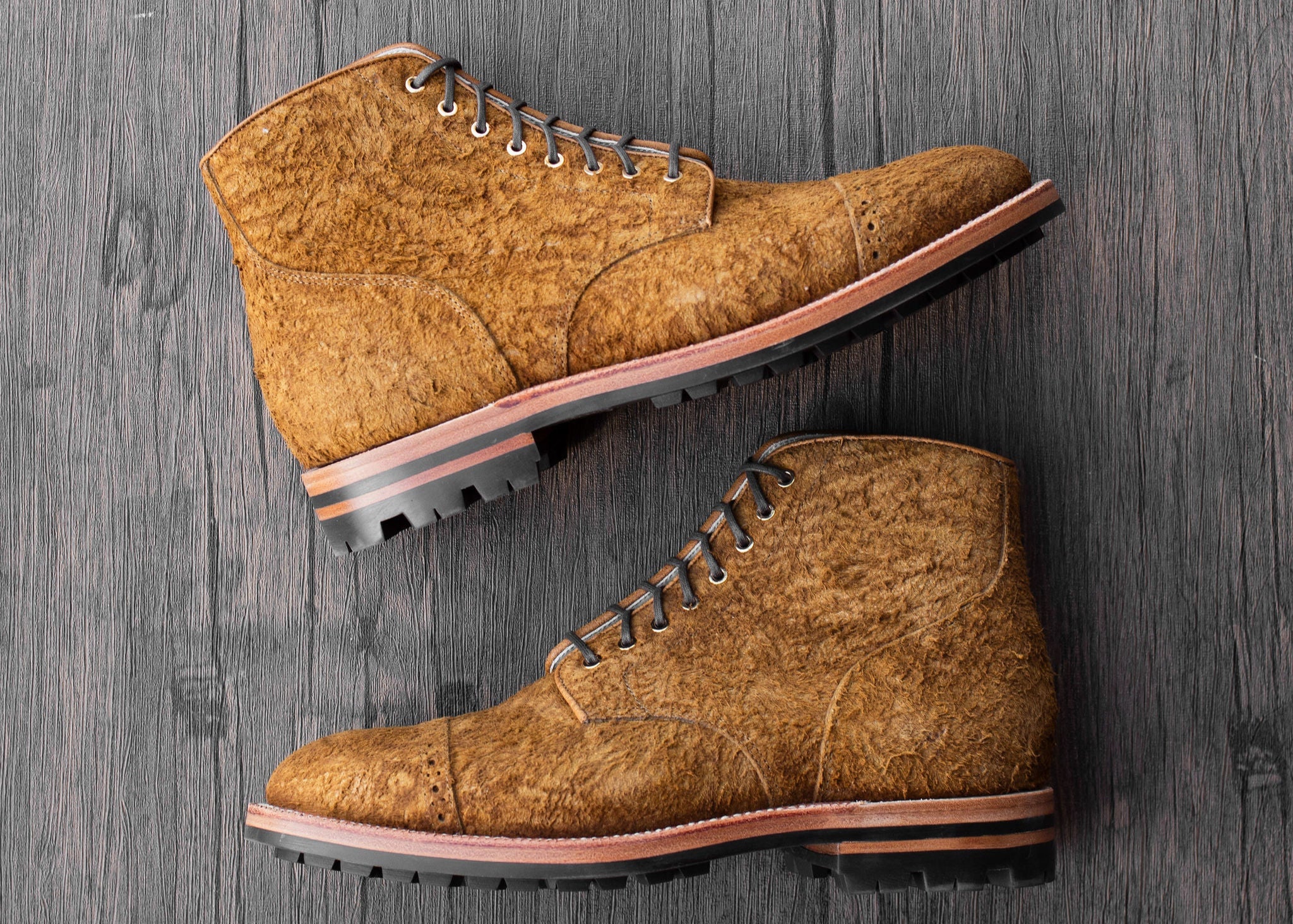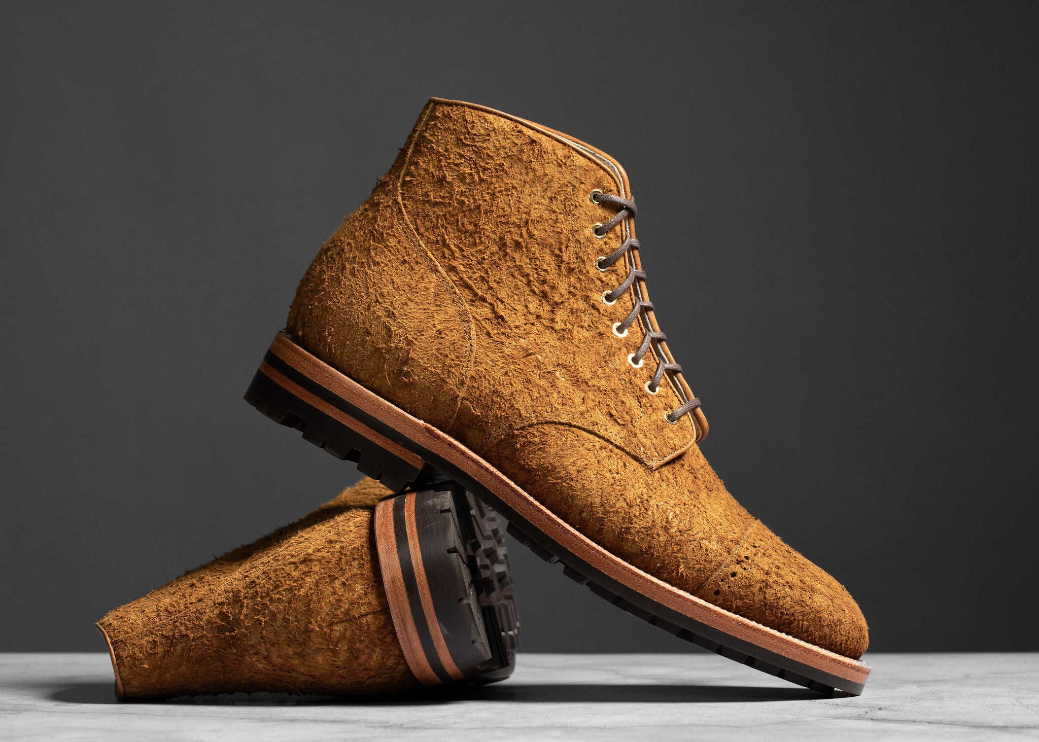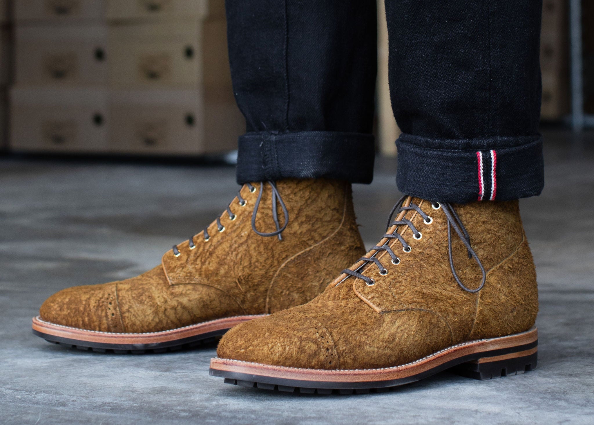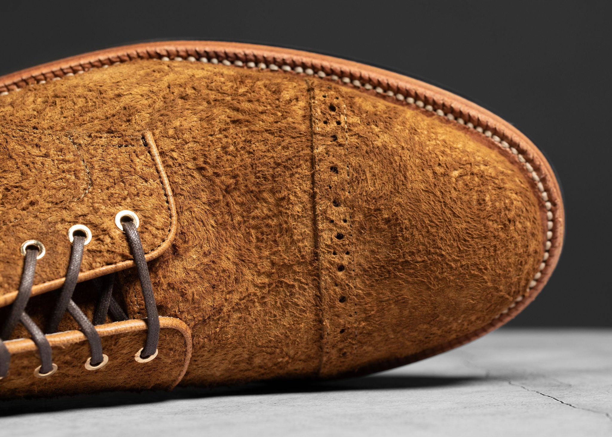 Tanned by Charles F. Stead in England, Bronze Rough Suede features a nappy finish, creating a rough and natural texture in a rich leather. This comfortable and chunky casual leather will have a wide range of nappiness to the suede. Due to the highly exaggerated and irregular nap of leather, variation should be expected. No two pairs will be the same.