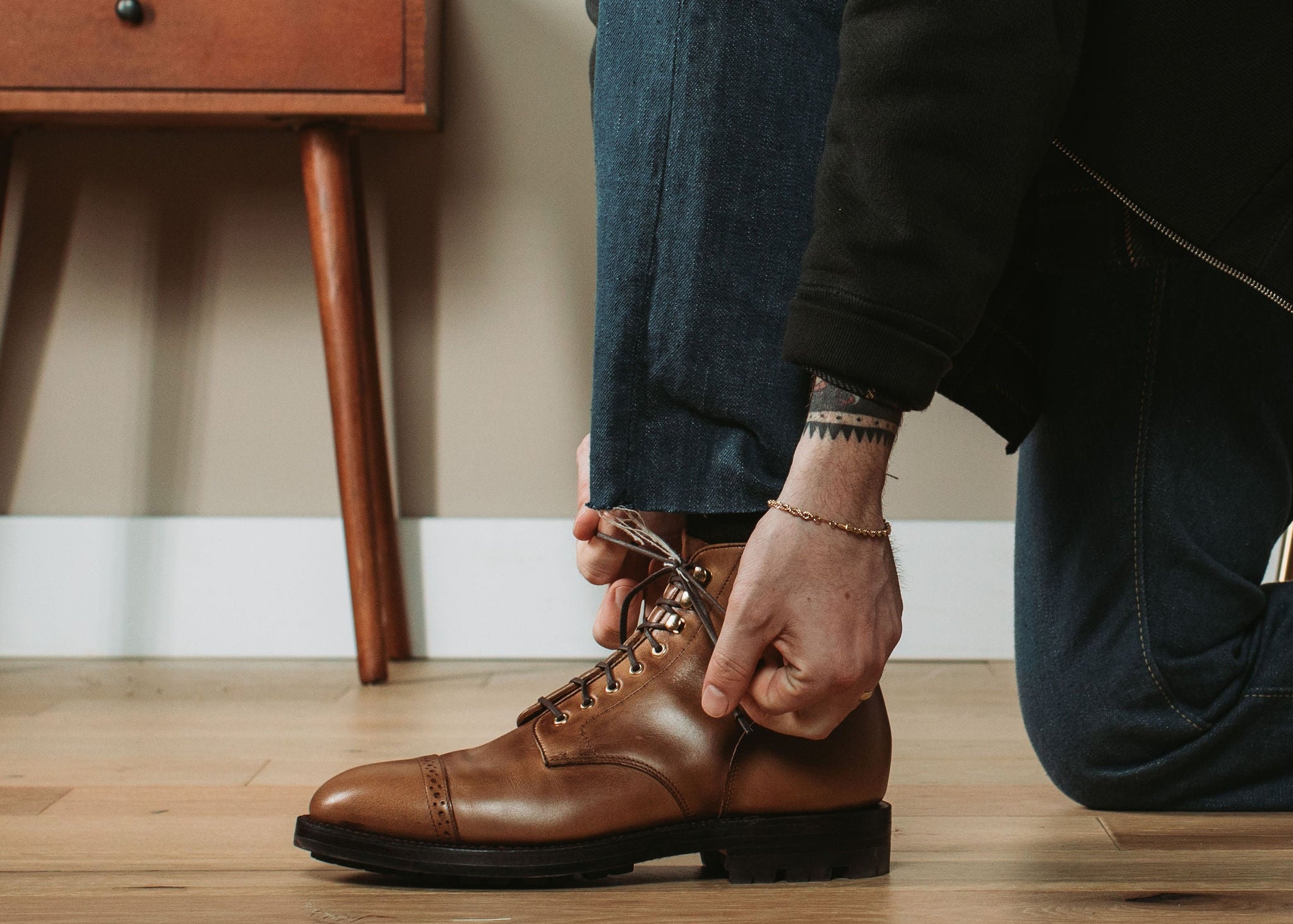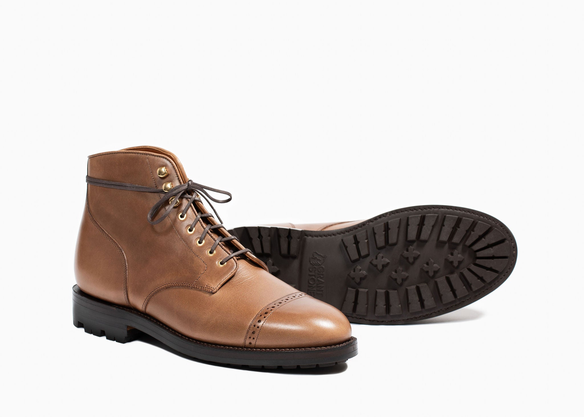 Featuring a perforated cap toe and backstay that hugs the heel counter, the Garrison boot is our first all-eyelet boot. Further drawing on its military history, we paired the Garrison boot with a lug outsole to offer more robust traction. Combining these elements produces a stylish yet utilitarian boot.