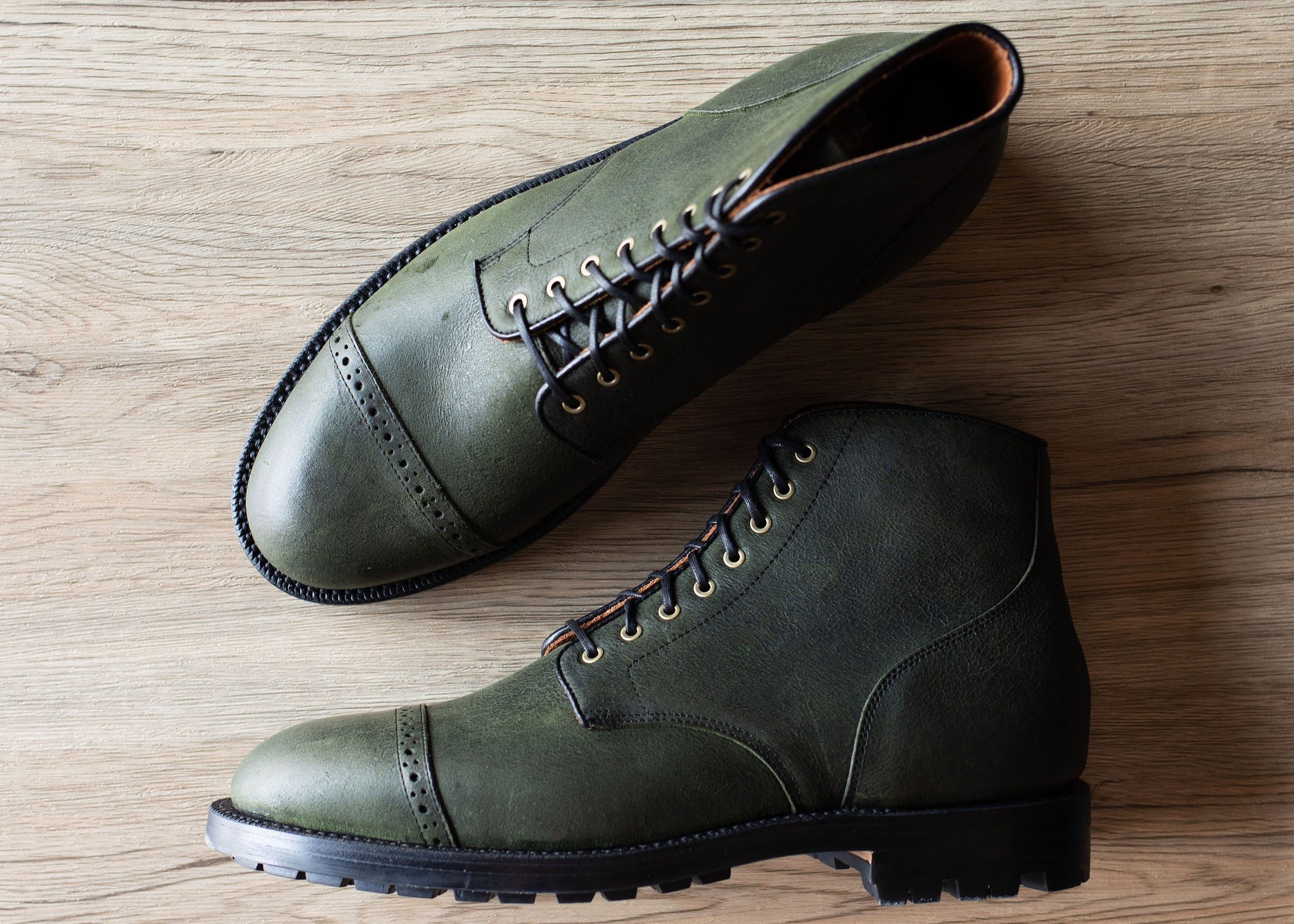 This Garrison Boot is made with dark welts and accents that offer the Forest Kudu leather the contrast it needs to highlight the green hues. Kudu leather has a distinctive character from the natural scars and blemishes unique to the African antelope. The soft, malleable leather will transform with wear, creating a comfortable boot that is one of a kind.