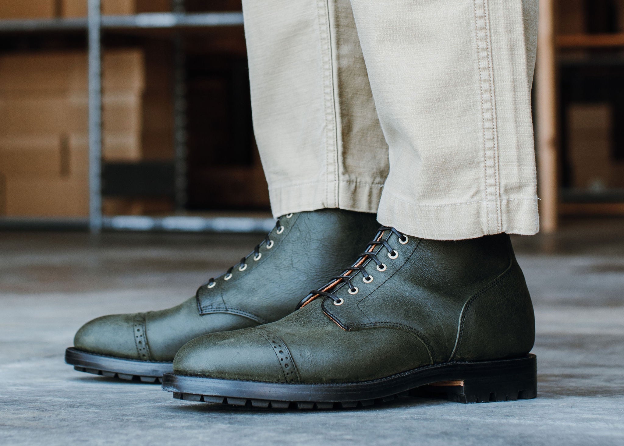 Featuring a perforated cap toe and backstay that hugs the heel counter, the Garrison boot is our first all-eyelet boot. Further drawing on its military history, we paired the Garrison boot with a lug outsole to offer more robust traction. Combining these elements produces a stylish yet utilitarian boot.