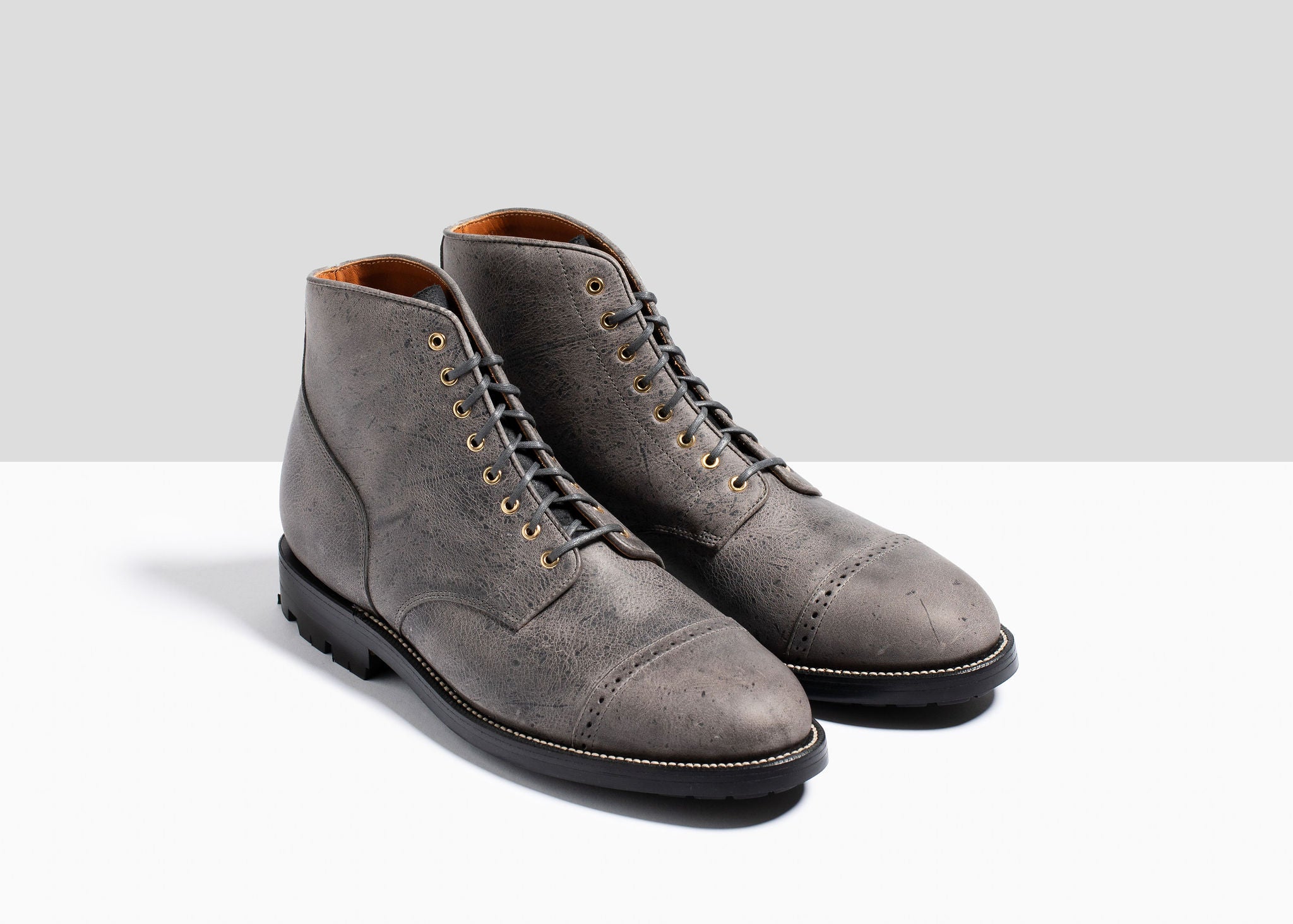 Featuring a perforated cap toe and backstay that hugs the heel counter, the Garrison boot is our first all-eyelet boot. Further drawing on its military history, we paired the Garrison boot with a lug outsole to offer more robust traction. Combining these elements produces a stylish yet utilitarian boot.