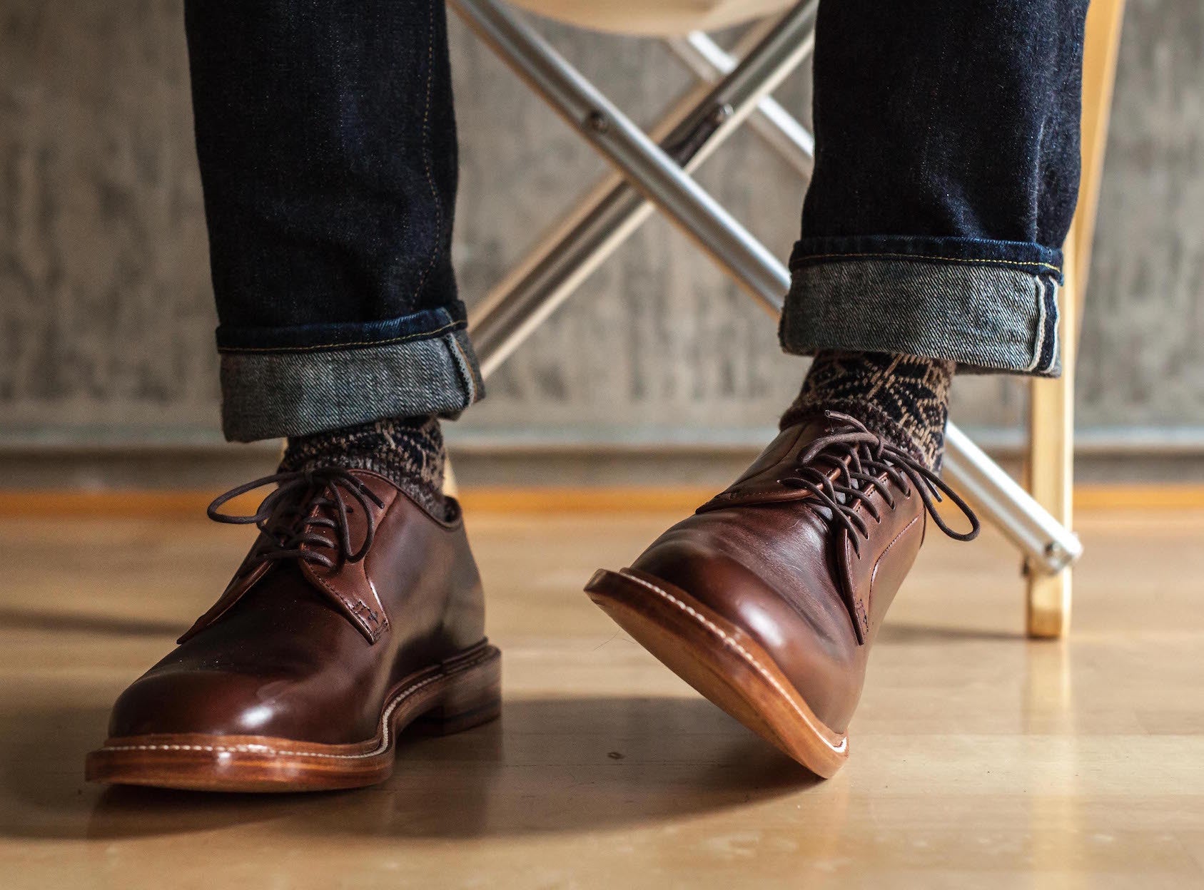 We developed a natural edge finish to accent the crimson upper, giving it a casual feel. This is "hot stuffed" leather that ages well due to the fat liquors and oils infused into it during the tanning process.