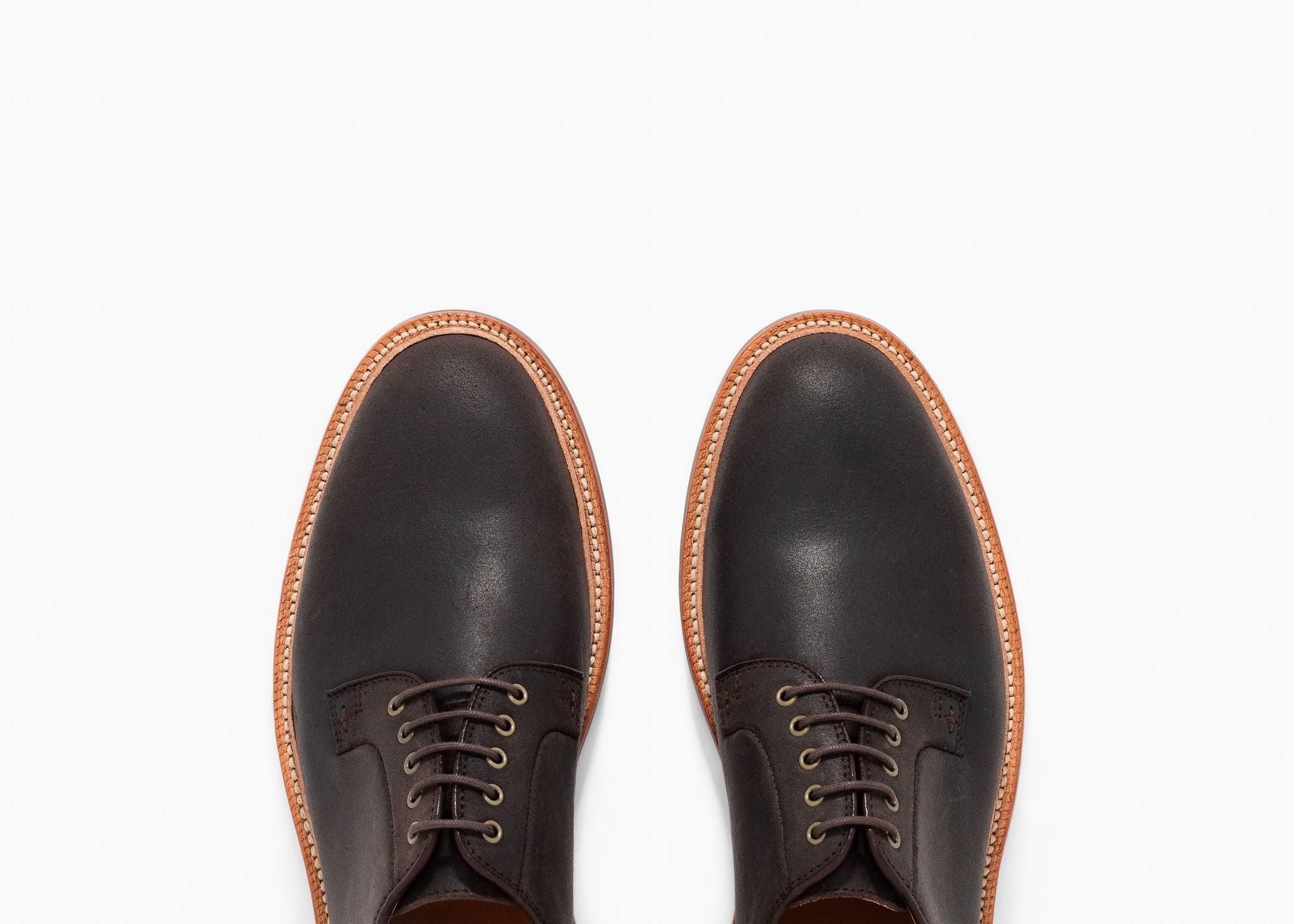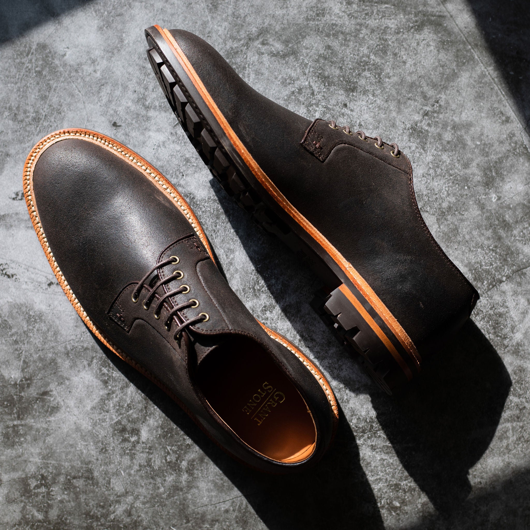This is the first shoe to use the lug sole, making one tough Blucher. The Waxed Commander leather combined with the taller lug sole is a great combination for a year-round Goodyear-welt shoe.