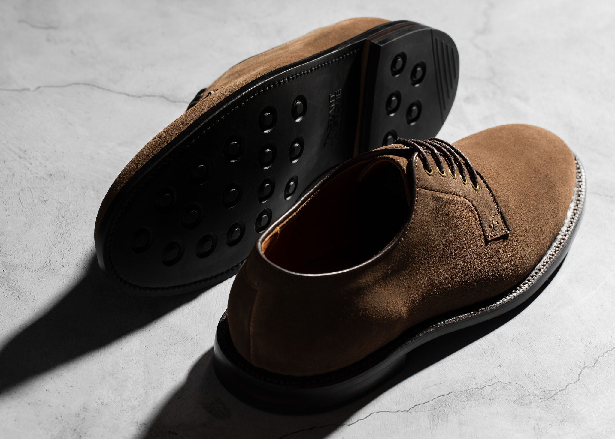 Crafted from Charles F. Stead's durable Husk calf suede, these Plain Toe Bluchers offer a versatile and sophisticated take on a timeless classic. The rich, deep brown suede provides a rugged yet refined texture, while the minimalist plain toe design ensures a clean and elegant profile. Perfect for both casual and smart-casual occasions, these bluchers combine a clean aesthetic with the practicality of a water-resistant suede, making them a reliable and stylish staple for any wardrobe.