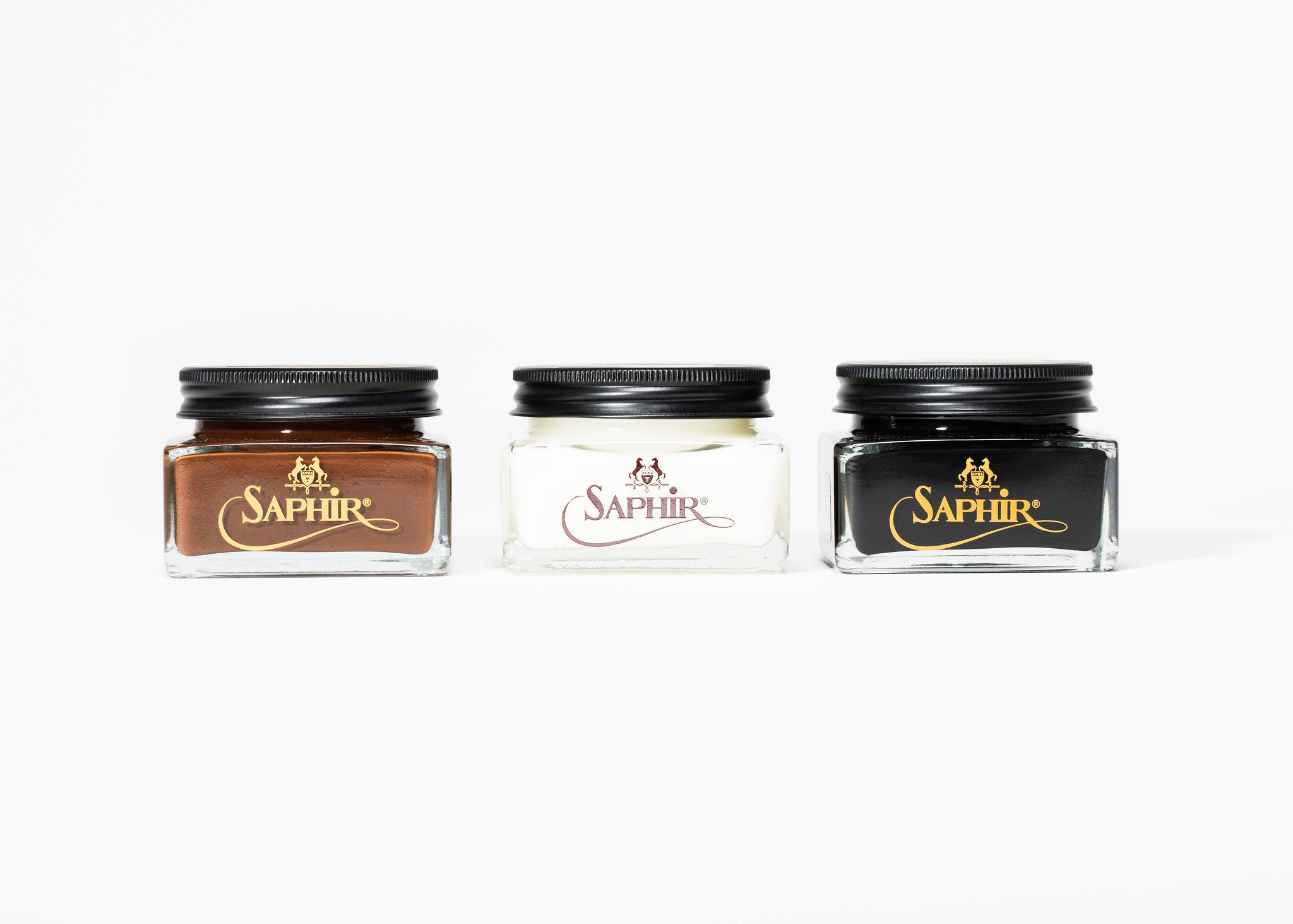 Pommadier, from Saphir's premier Medaille collection, is the gold standard for colored creams. The high concentration of color combined with seven different waxes allows the cream to clean, nourish and revitalize the leather's vibrancy.