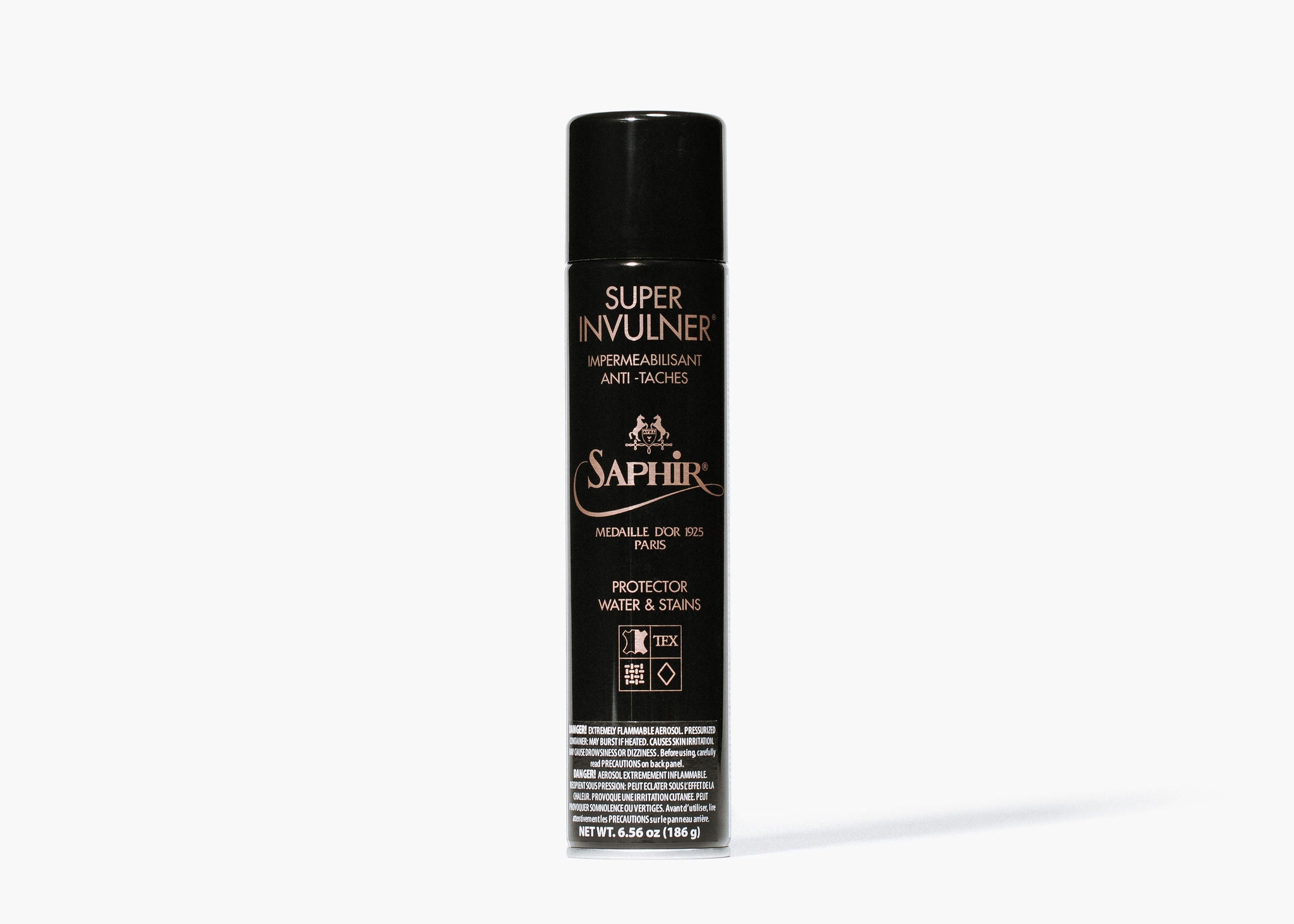 Saphir's Super Invulner is perfect for waterproofing the finest suedes and nubuck leathers. The non-silicone formula is a neutral color and will not discolor the leather's nap.