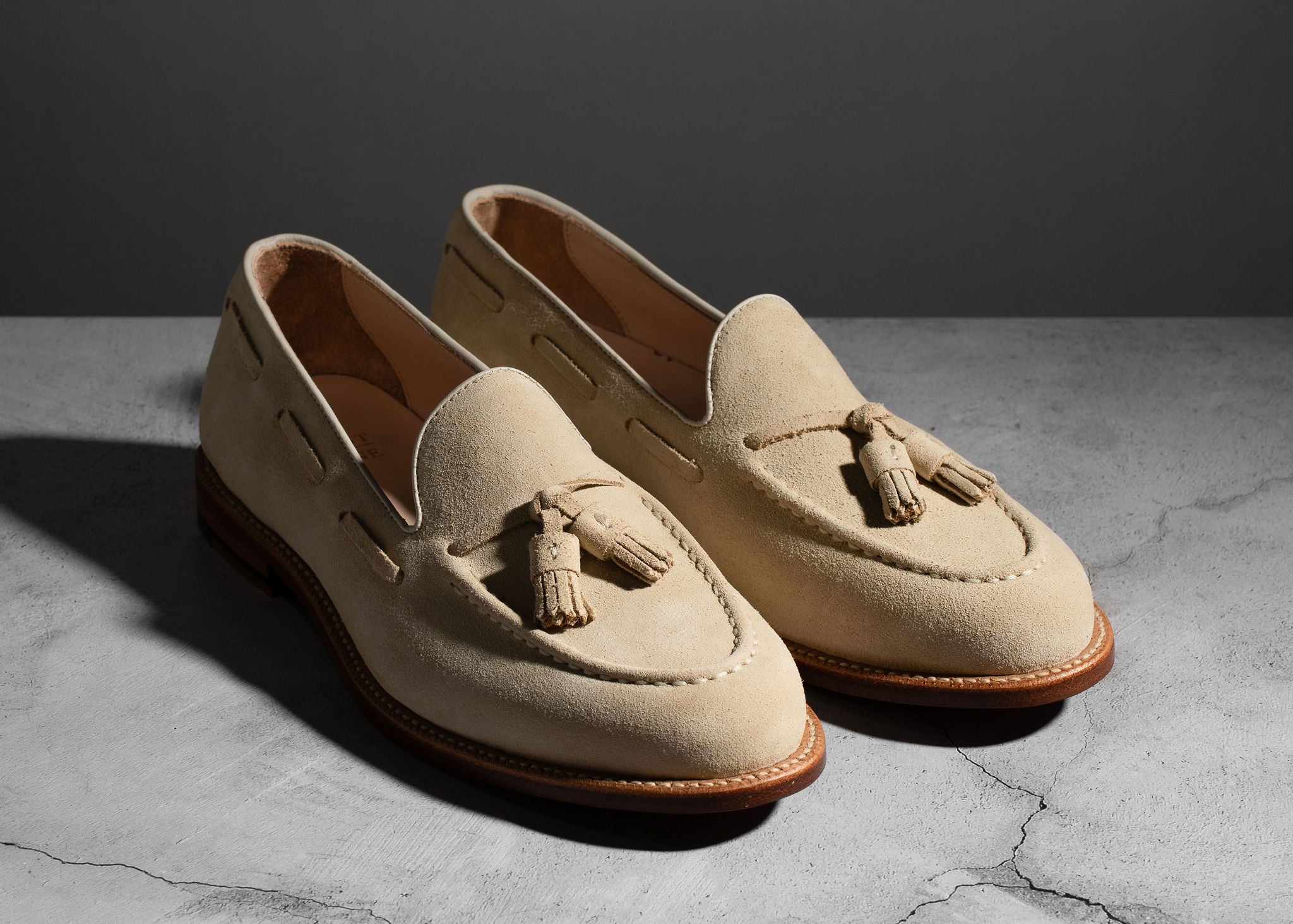 Crafted from Charles F. Stead's water-resistant Repello calf suede, these Safari Suede Tassel Loafers offer a sophisticated yet relaxed aesthetic. The classic tassel loafer design is enhanced by the soft, luxurious suede and distinctive tassels, creating a refined look perfect for both casual and elevated ensembles. Combining effortless slip-on style with durable construction, these loafers are a versatile and elegant choice for any discerning individual, providing comfort and timeless appeal for any adventure.