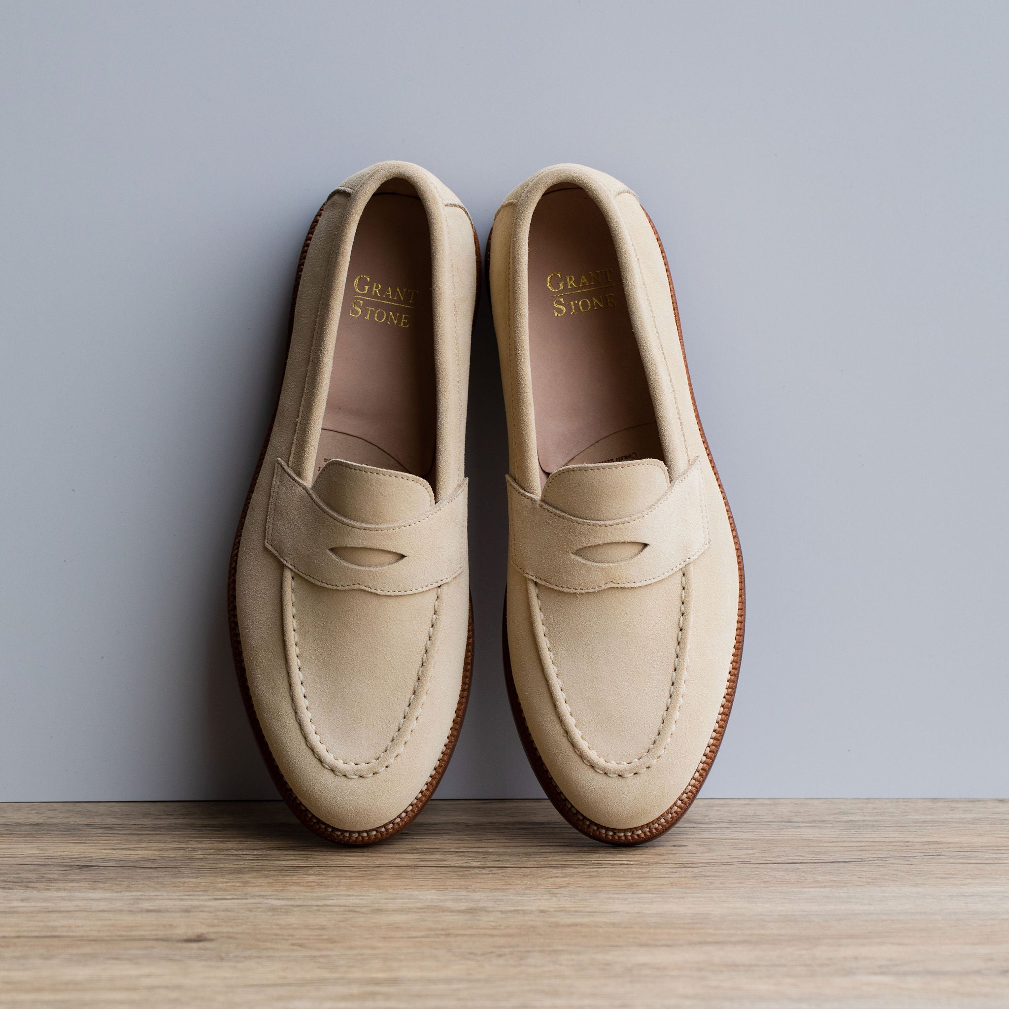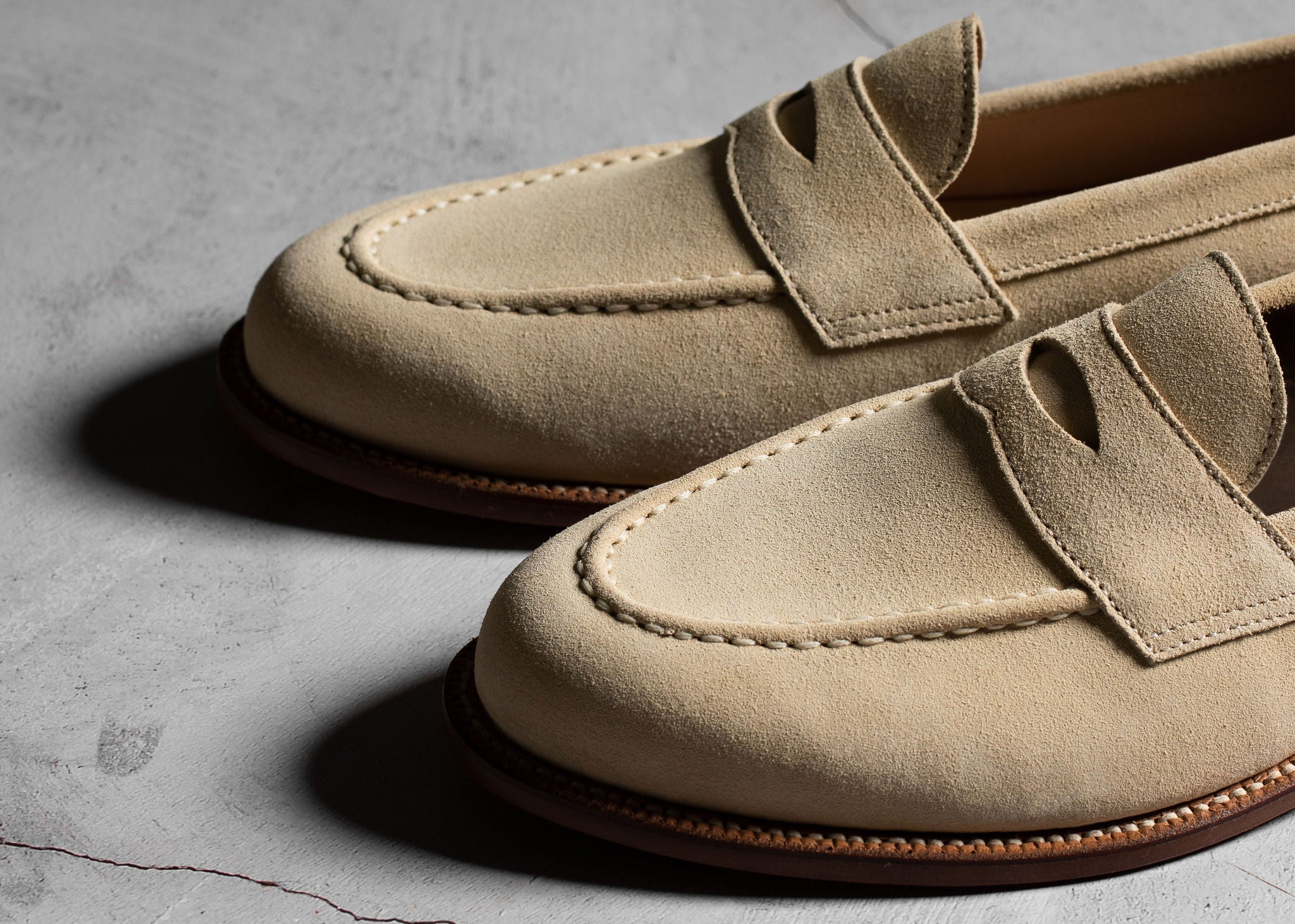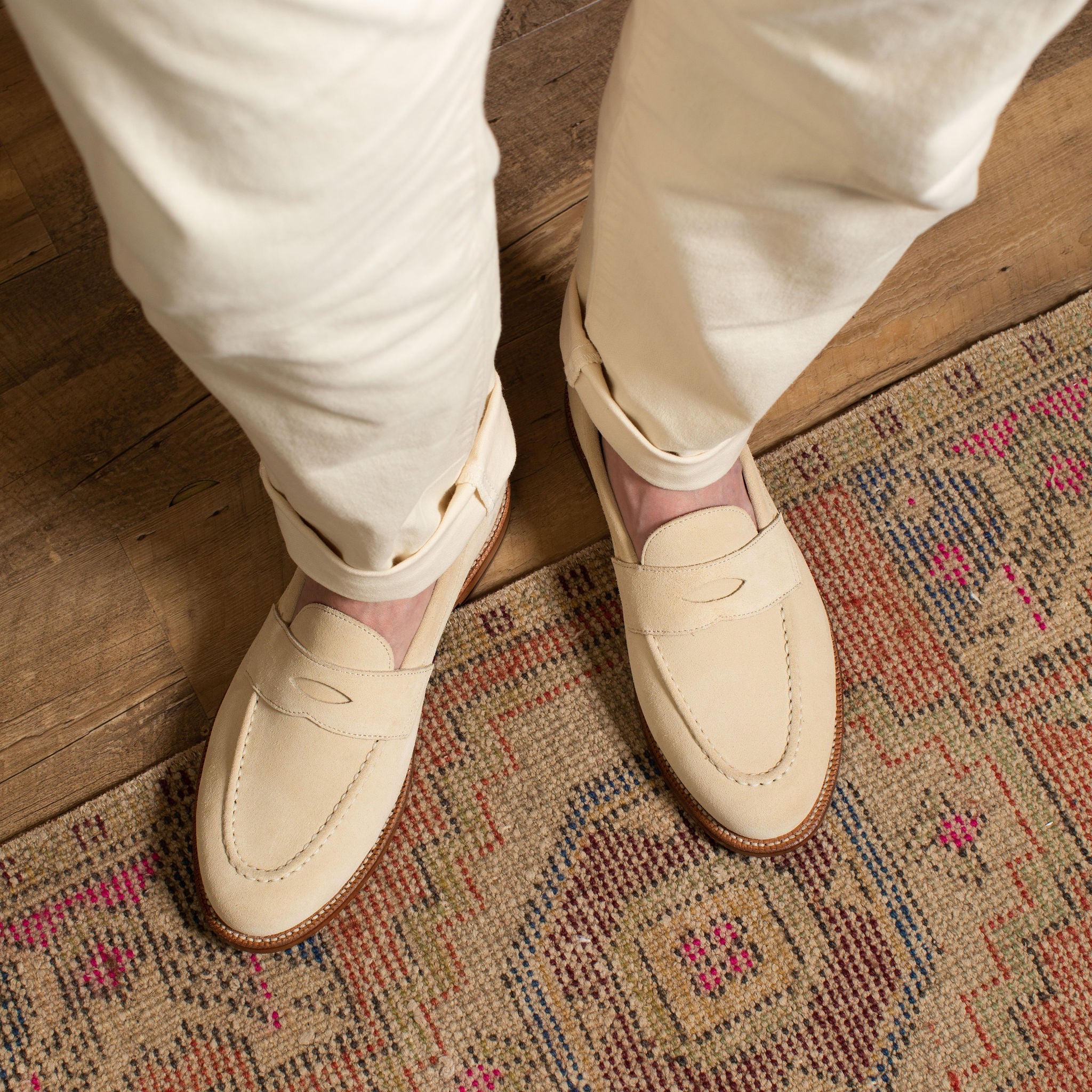 Not to be confused with the previous Ivory Suede, Butter has a warmer base color. An off-white suede has proven to be incredibly versatile and looks great with wear. Similar to a white buck, you can dress it up or down, and it will develop a unique character over time.
